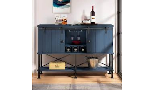 Do you want a stylish upgrade for your bar corner or the kitchen? This Navy wine storage cabinet is on another level of luxury. You can hold 12 bottles of wine in the wine rack and store other glassware and small items in the sliding door cabinets.