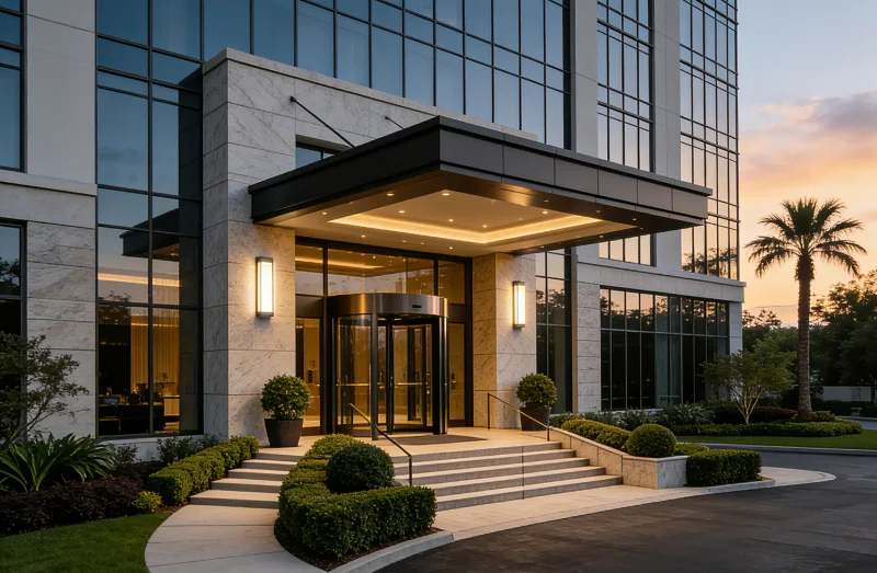 Commercial and public outdoor spaces: Shop frontages and signs, hotel/restaurant entrance walls, office building facades, parking lot/underground garage entrance walls, public passageway walls in shopping malls/pedestrian streets, etc.