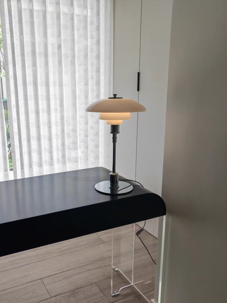 La simplicité est un art. Cette lampe de table postmoderne suit ce principe, avec un abat-jour simple à trois couches associé à une base dorée, simple mais luxueuse.