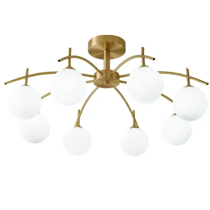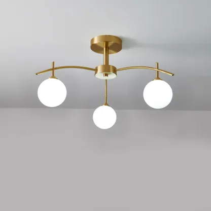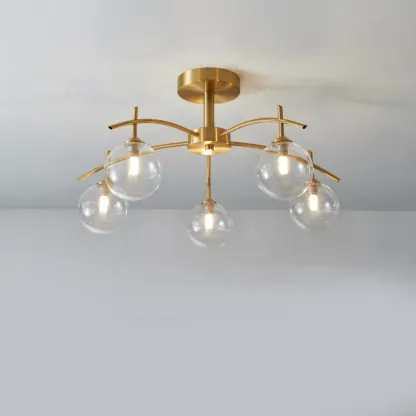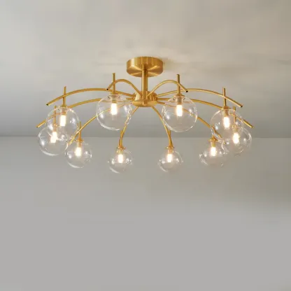 Classic Large Globe Glass Golden Semi Flush Mount Ceiling Light