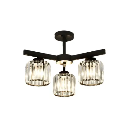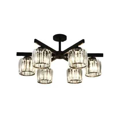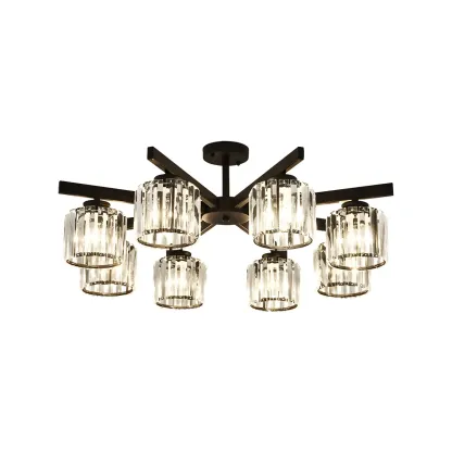 Modern Large Black Cylinder Crystal Semi Flush Ceiling Light