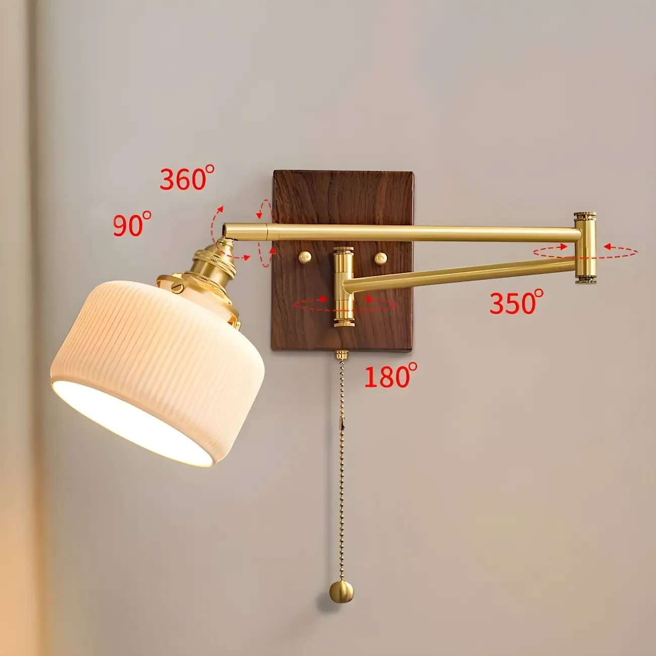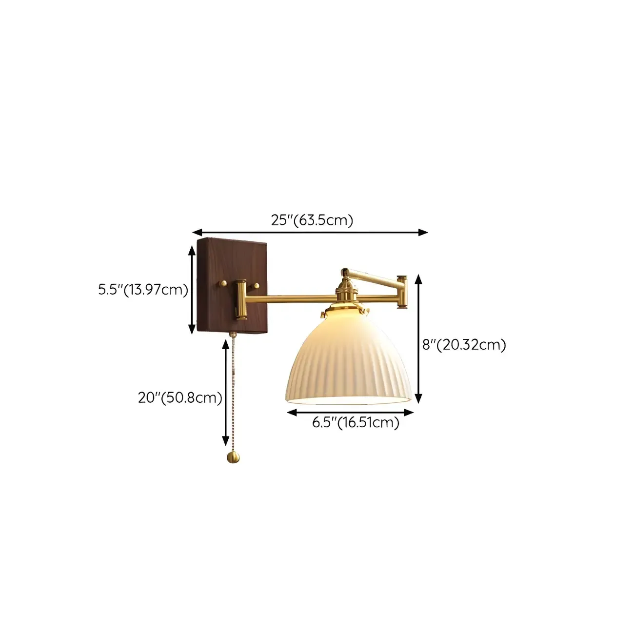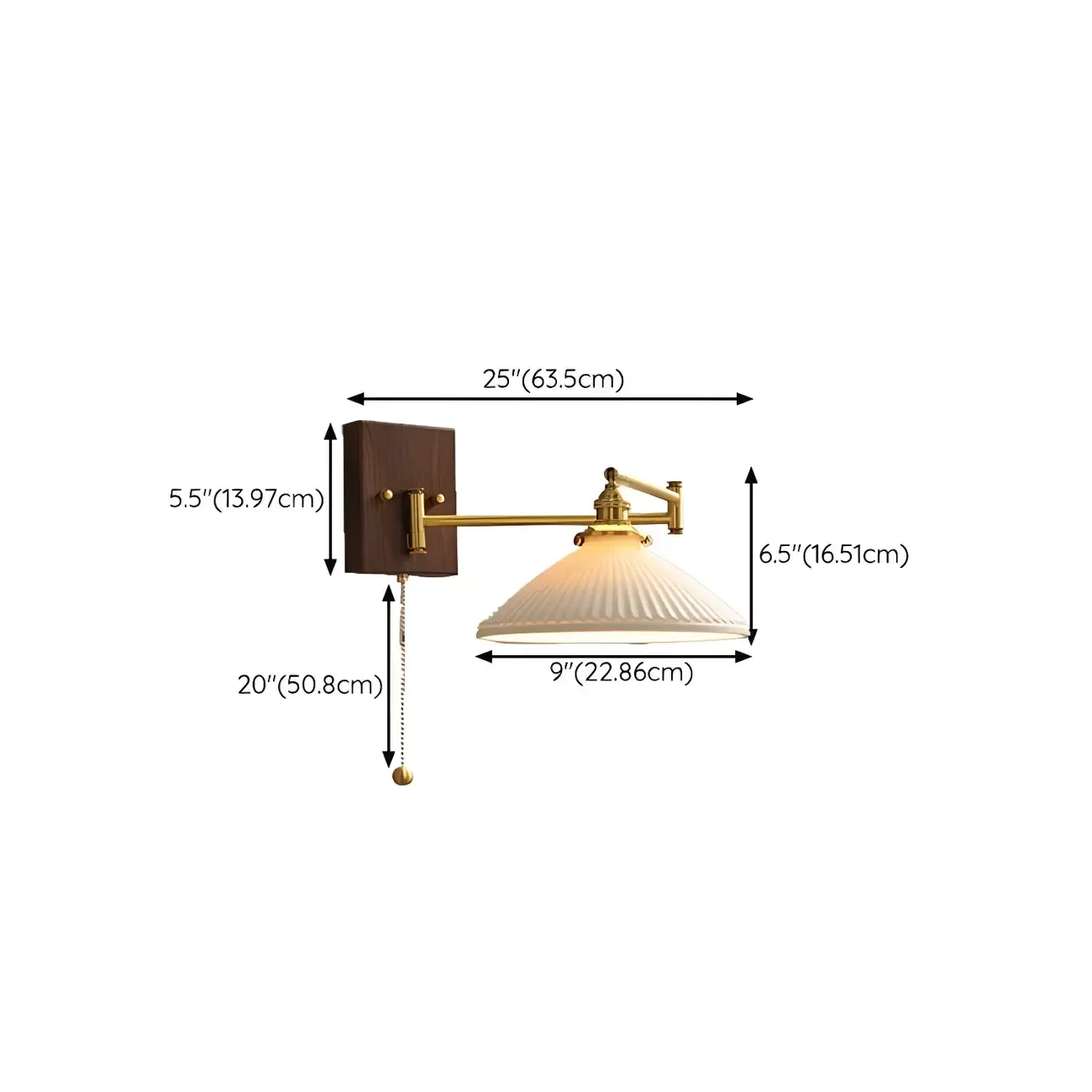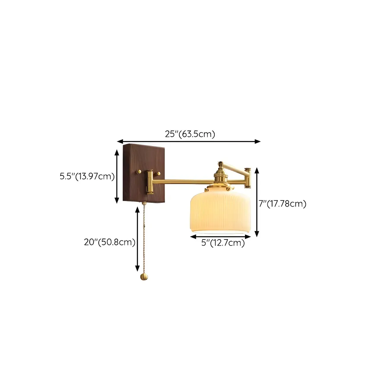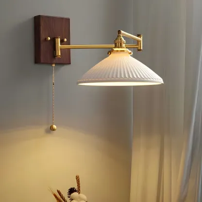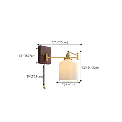 25" Vintage Bedside Swing Arm Wall Light with Pull Switch
