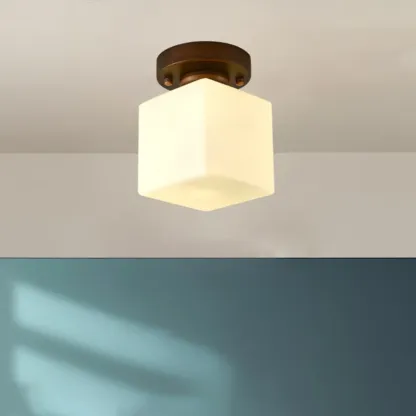 5 to 9 Inch Cube Glass Metal Semi Flush Ceiling Light