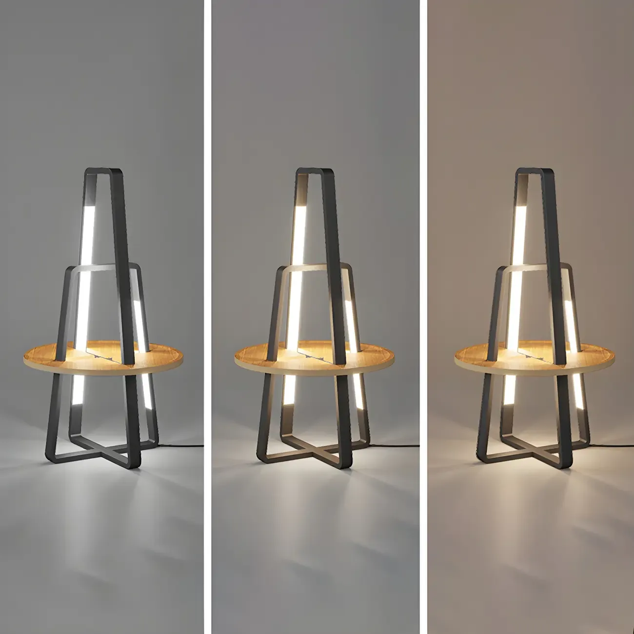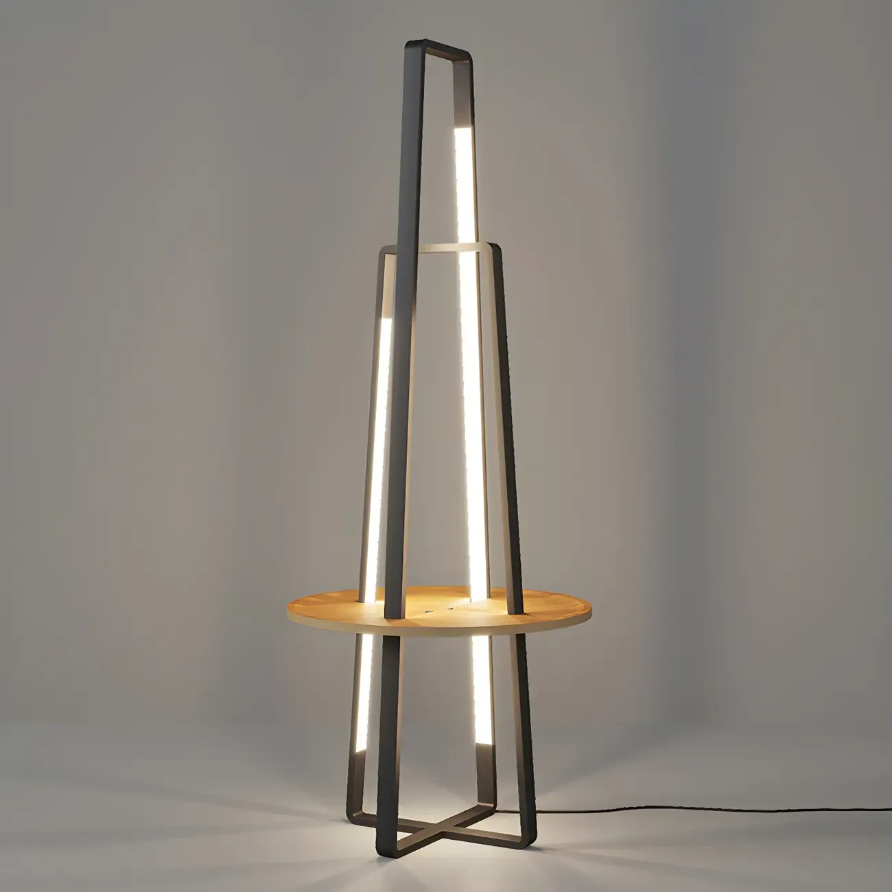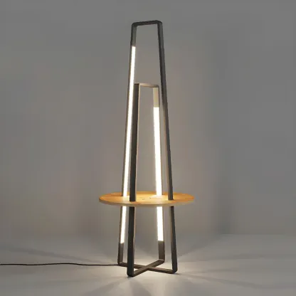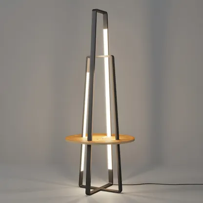 63"Black Linear LED Floor Lamp with Shelf for Living Room