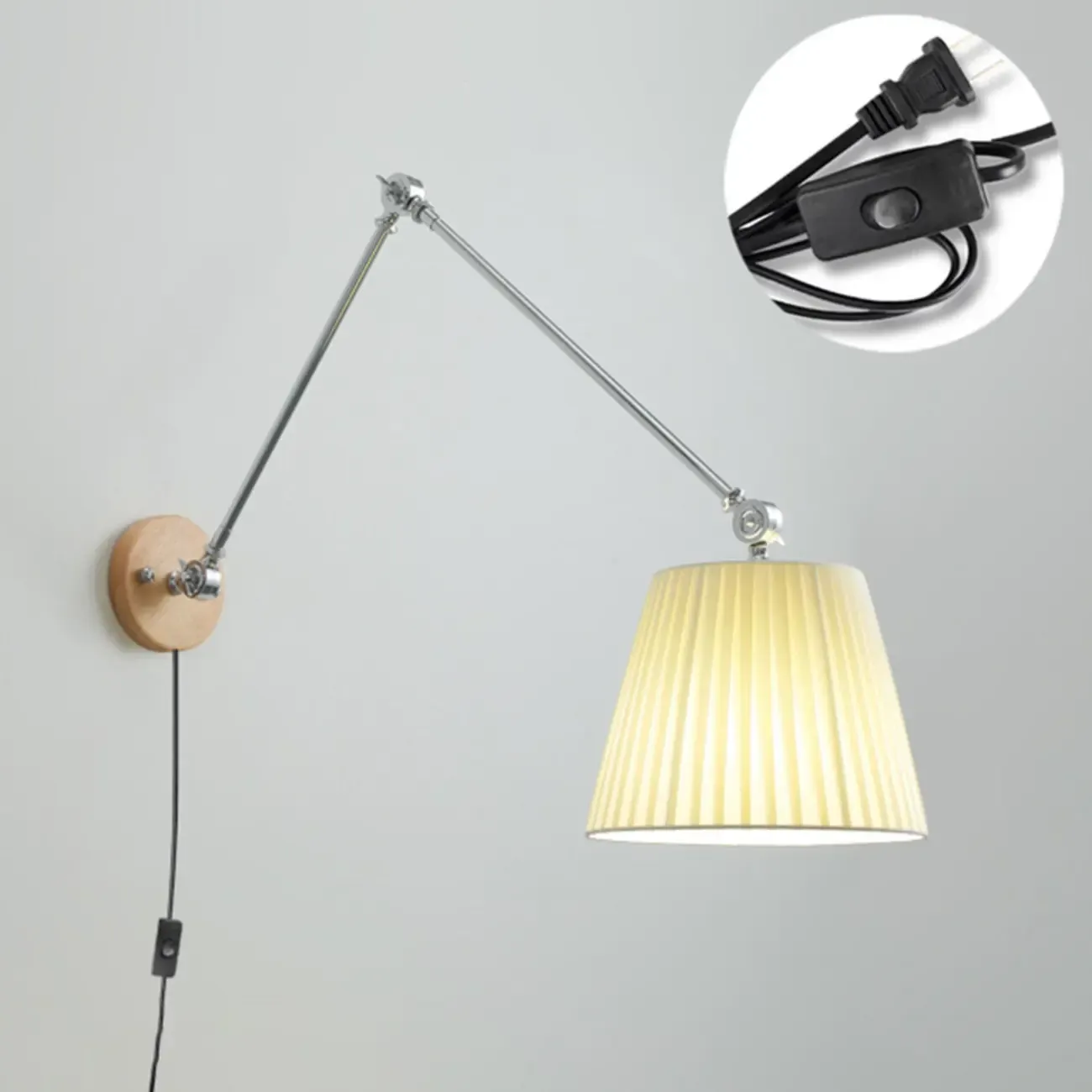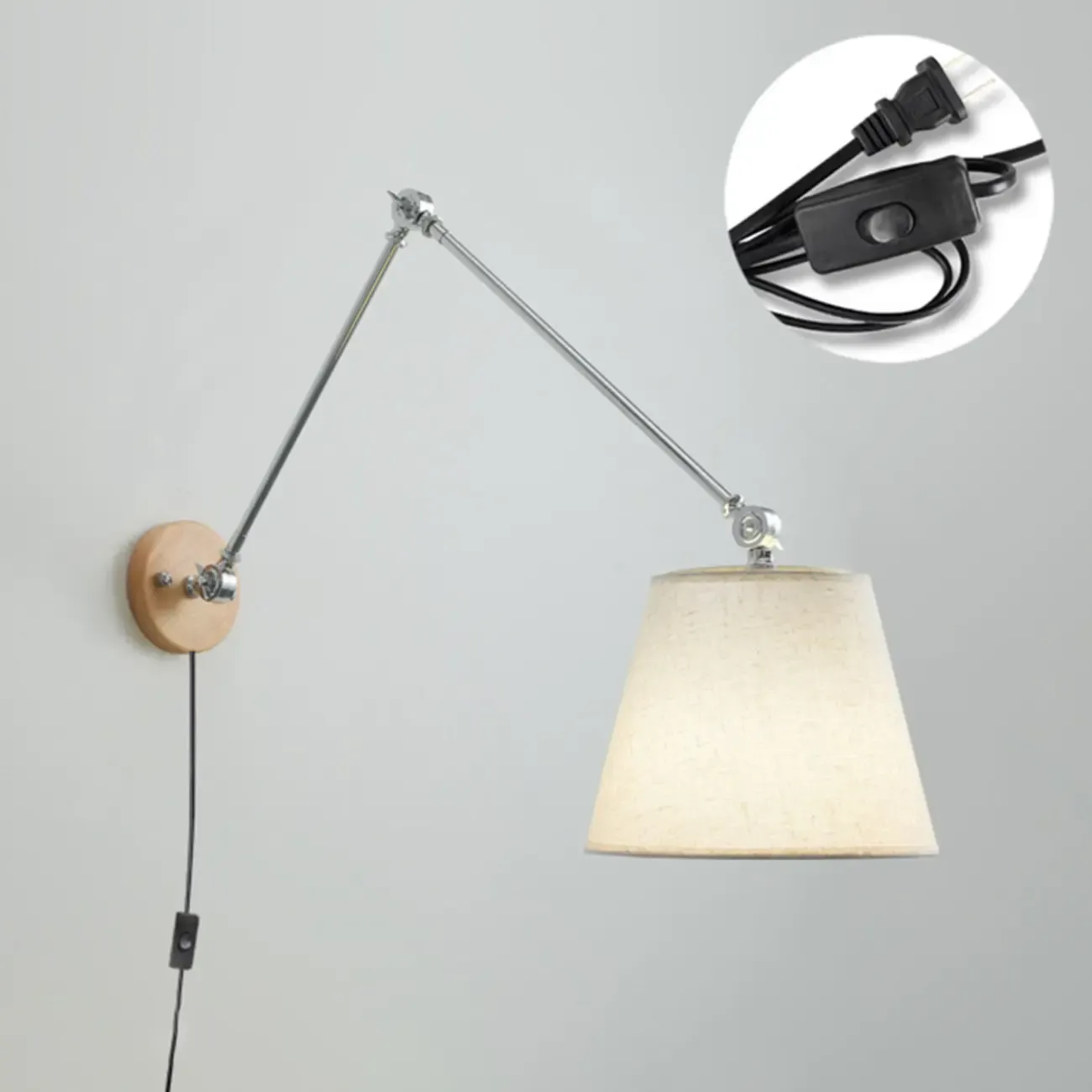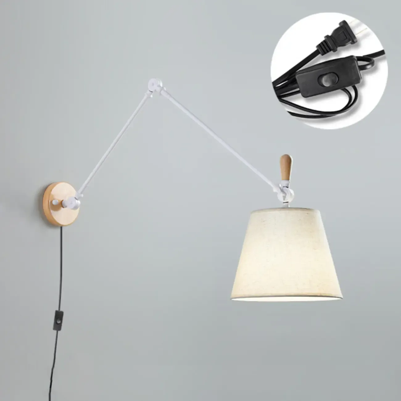 Cylinder Beige Swing Arm Wall Light for Learning Space