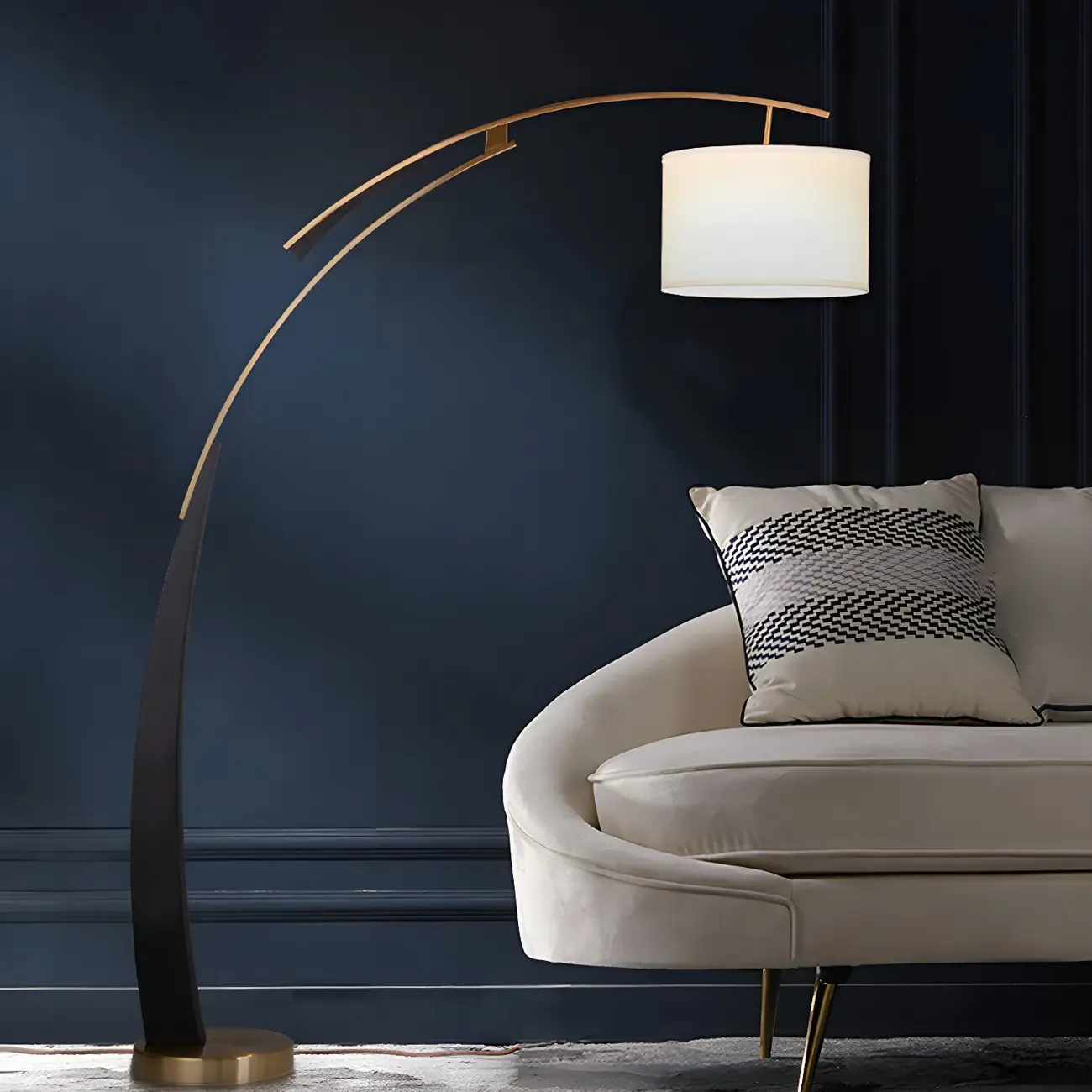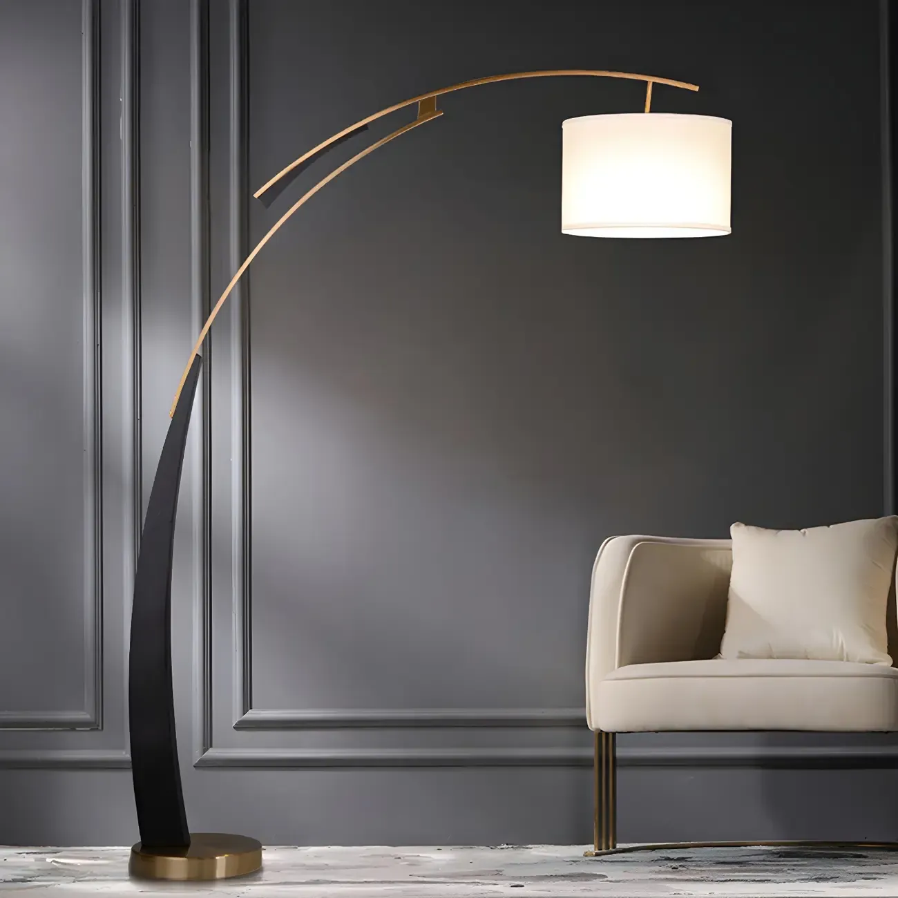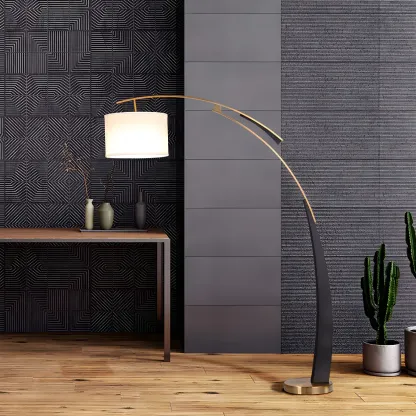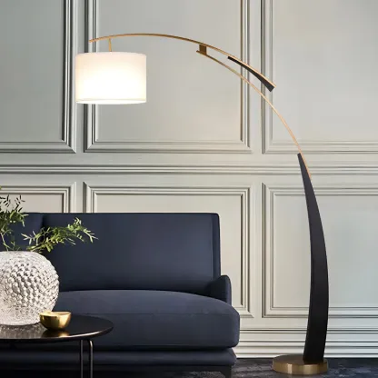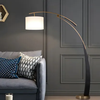 Arm Adjustable Arc Floor Lamp with Drum Shade for Living Room