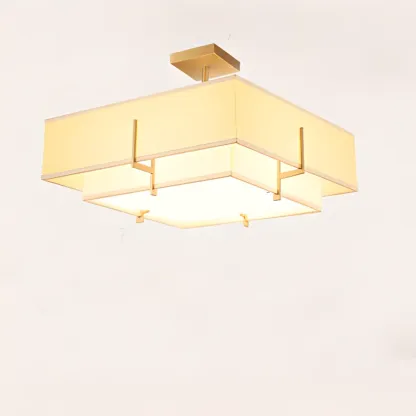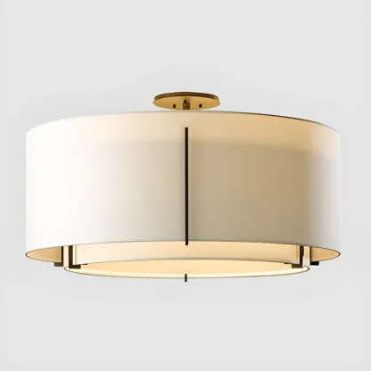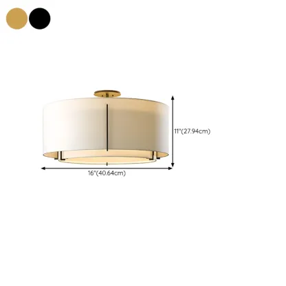 Modern White Drum Fabric Shade Semi Flush Ceiling Light