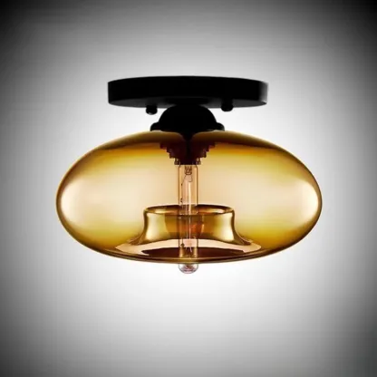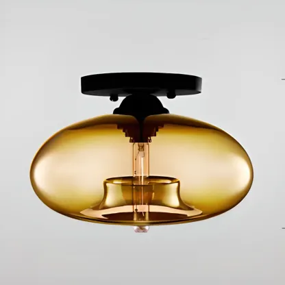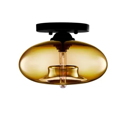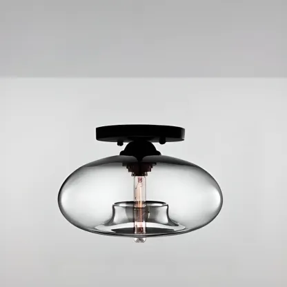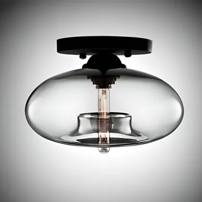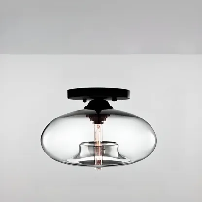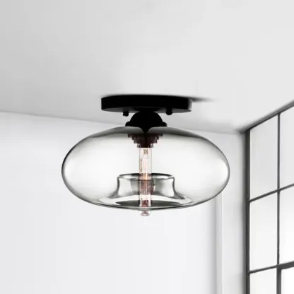 Clear Glass Drum Shade Industrial Semi Flush Mount Light