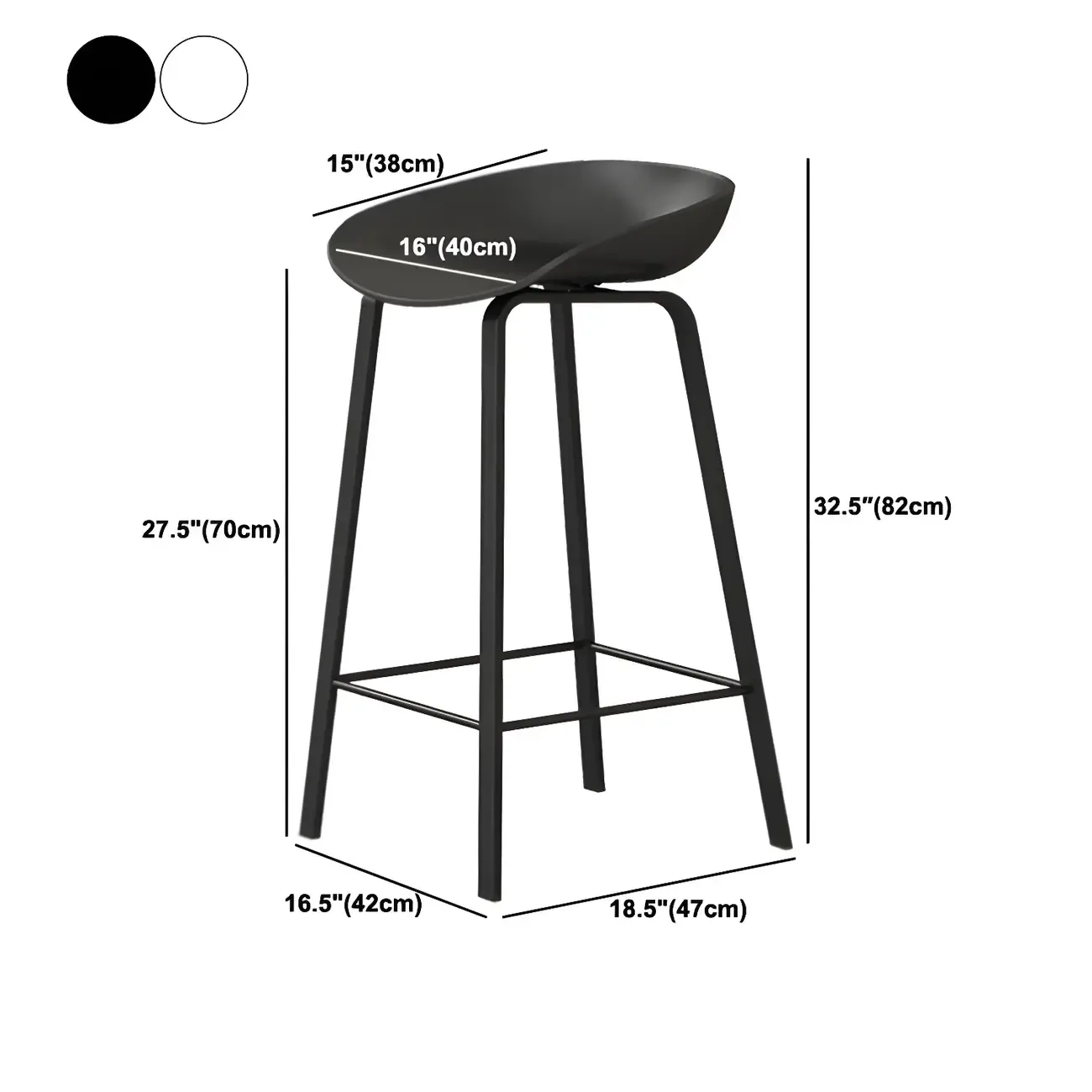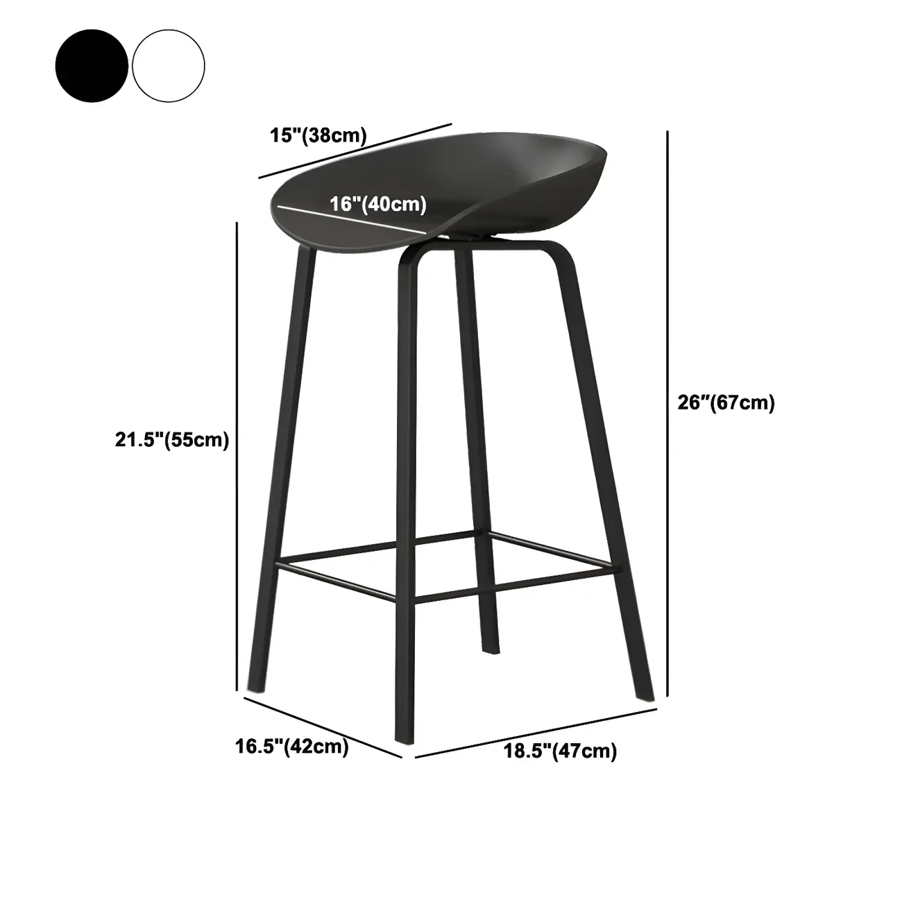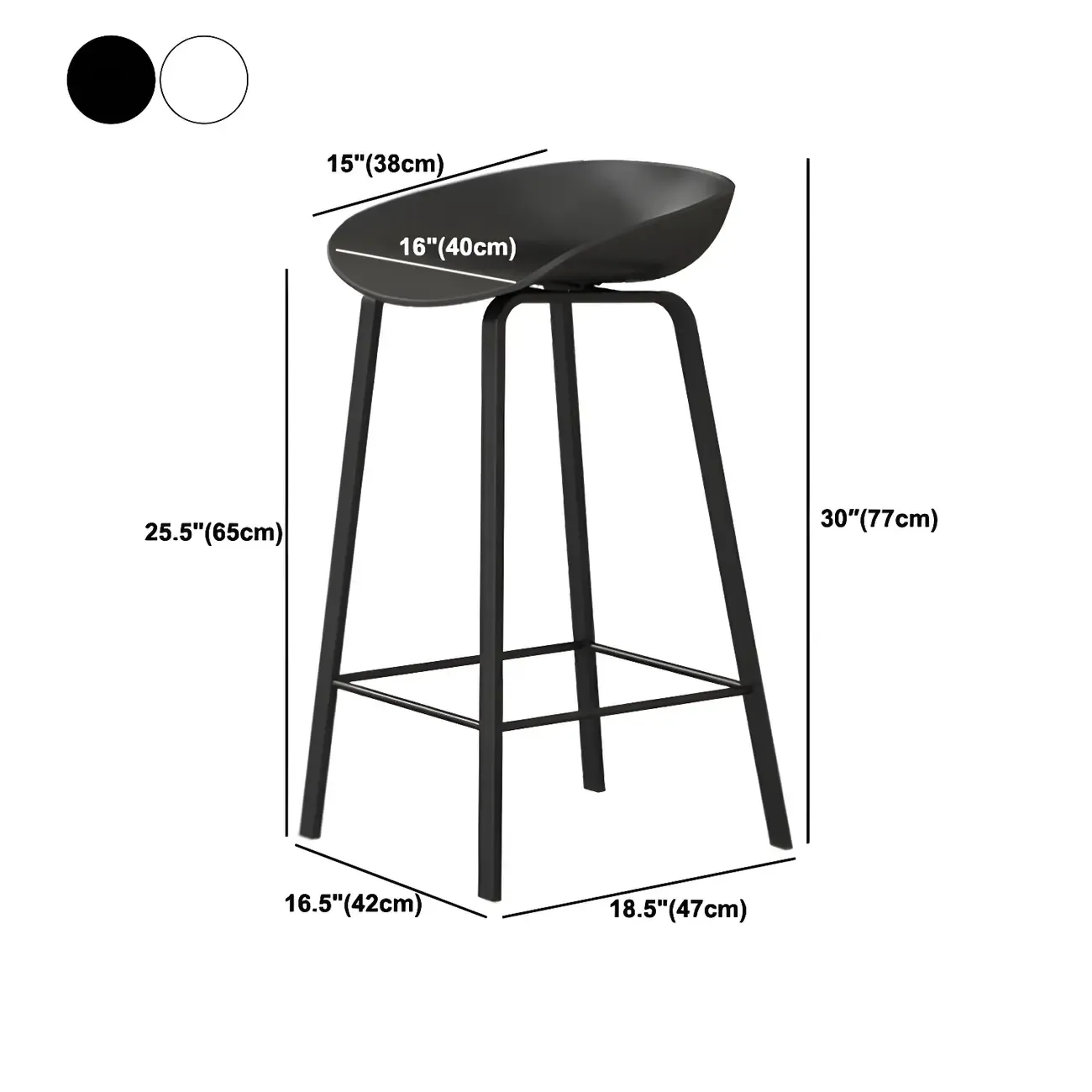 Contemporary Black Metal Sleek Design Ergonomic Bar Stool