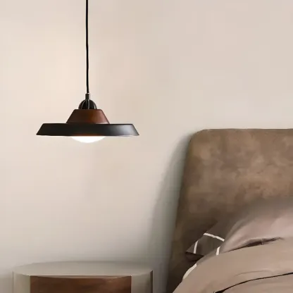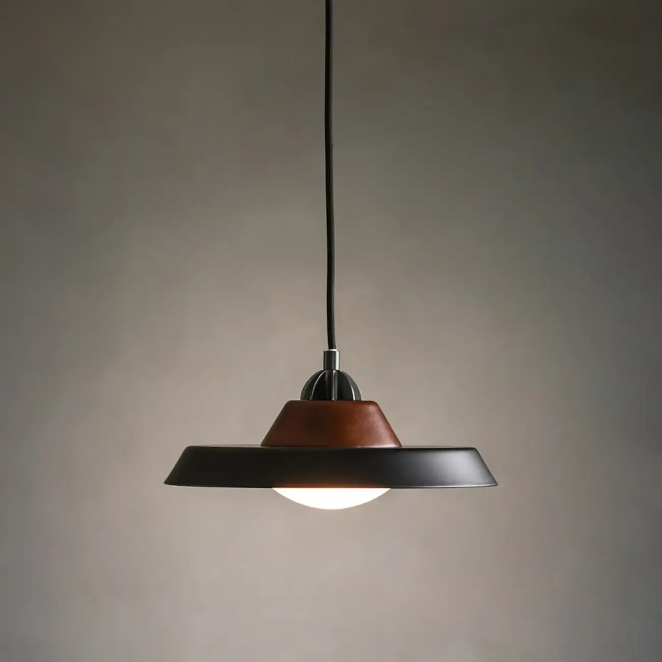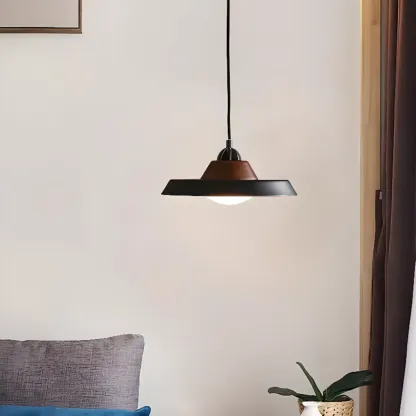 Contemporary Black Mini Pendant Light with Iron & Wood