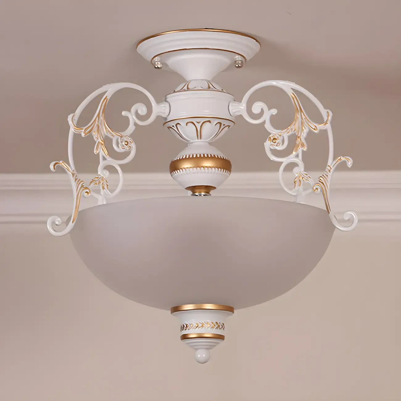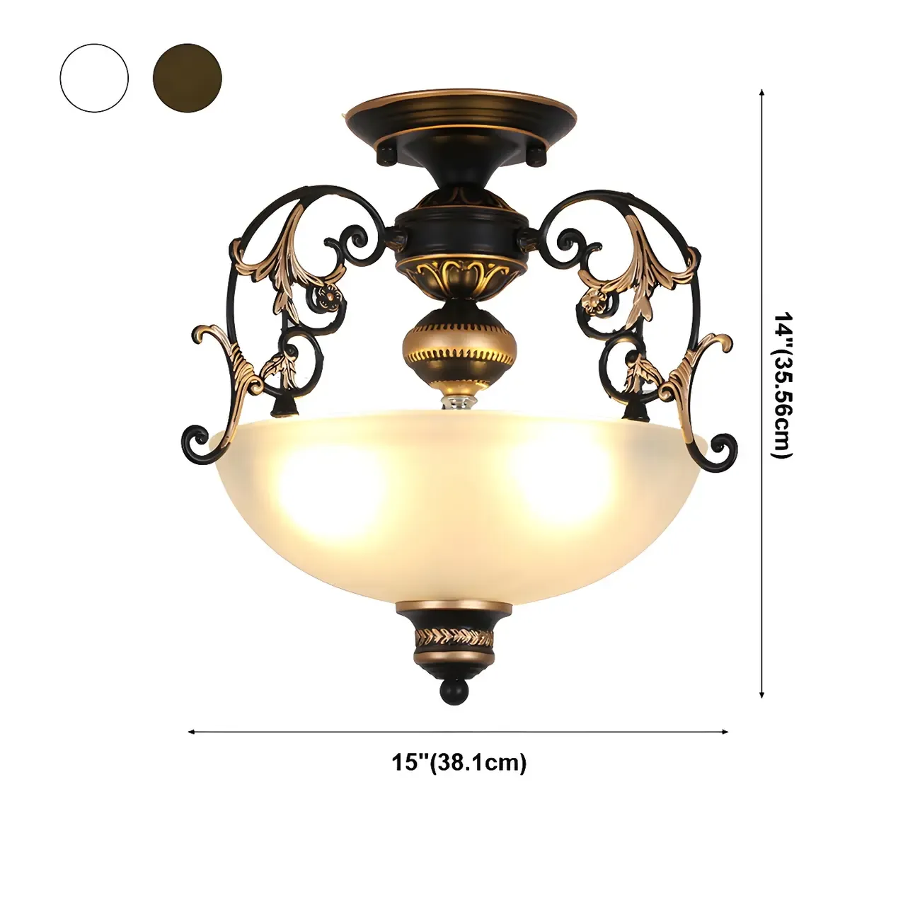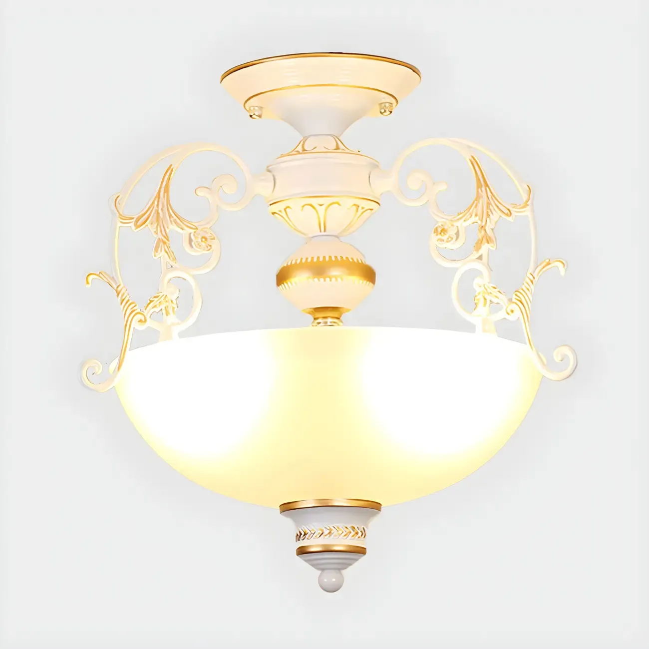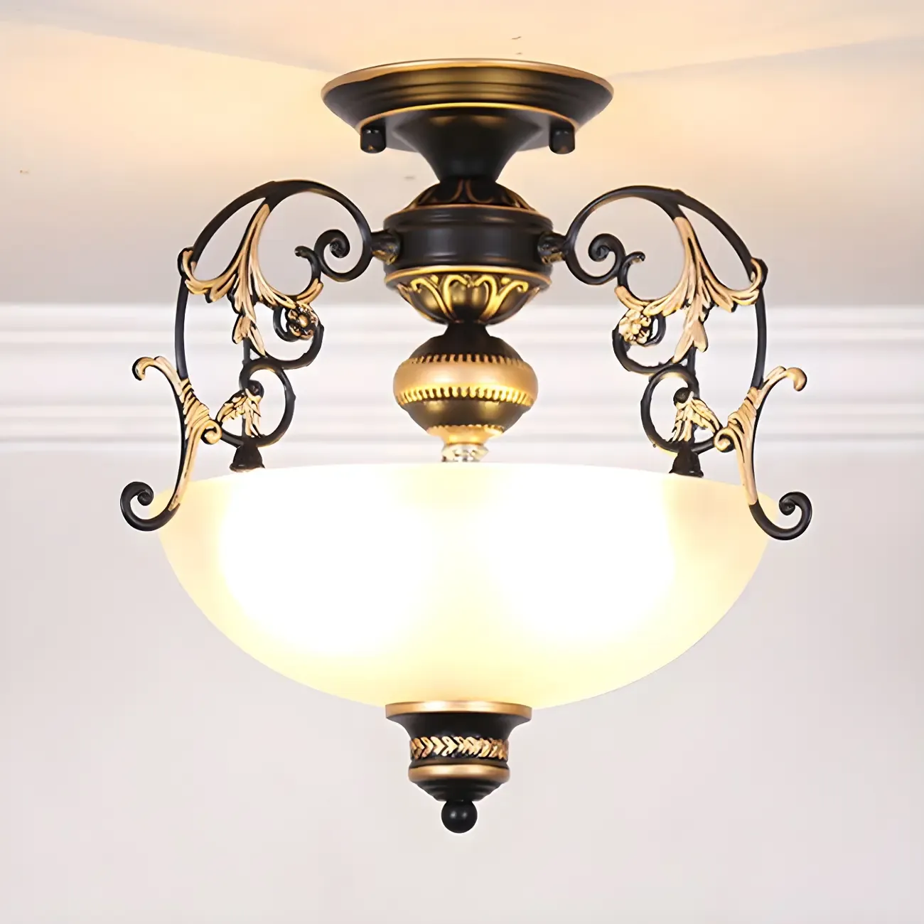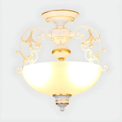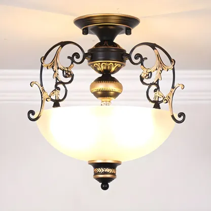 Vintage Metal Glass Dome Semi Flush Ceiling Light