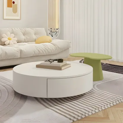 Drum Round White Wood Modern Coffee Table with Storage