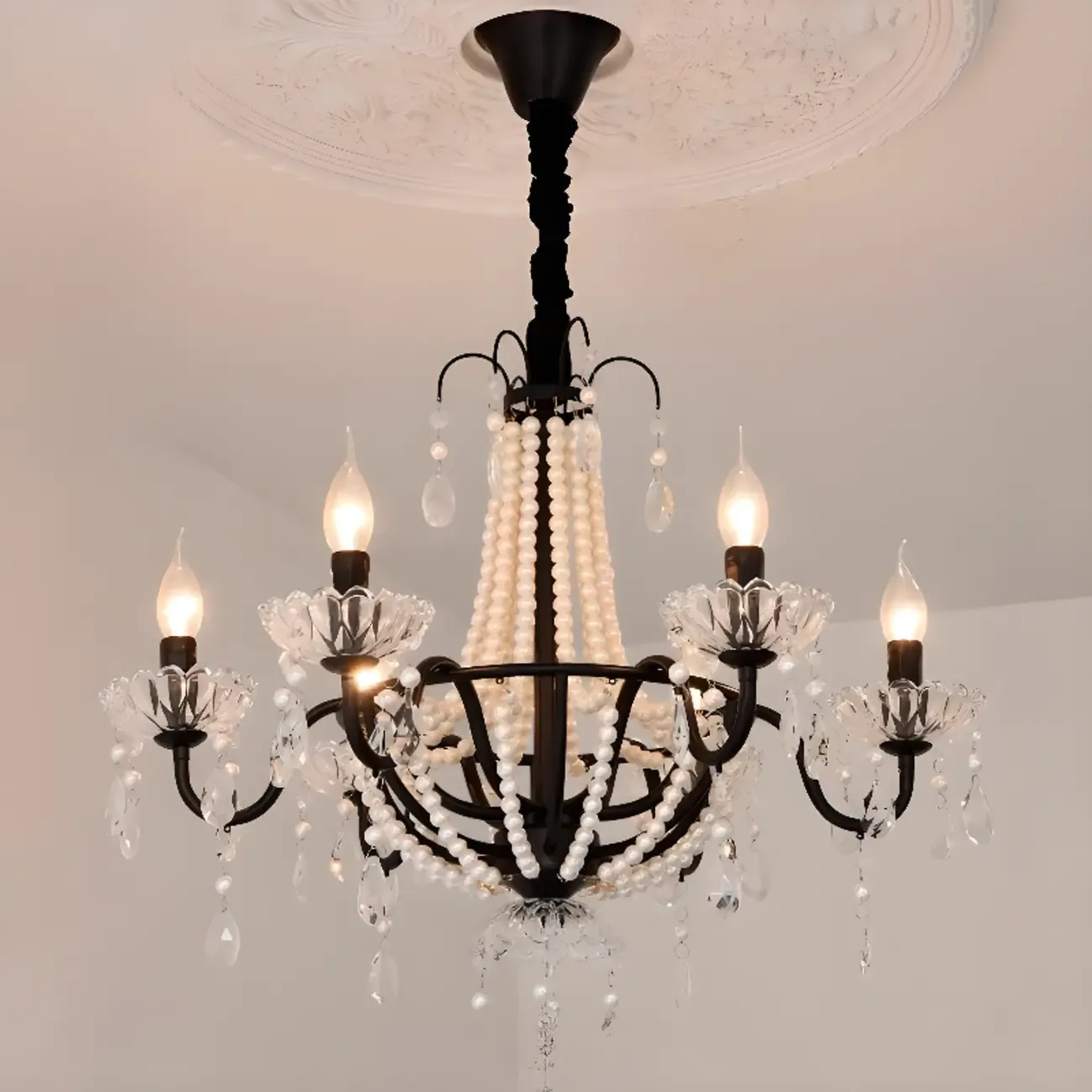 Elegant Classic Crystal Beads Chain Candelabra Chandelier
