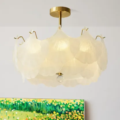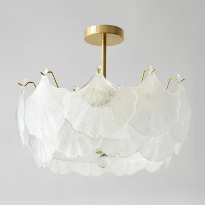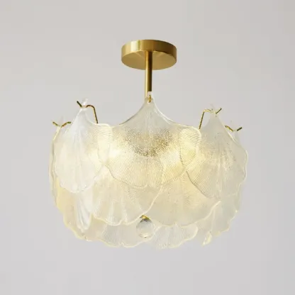 Elegant Gold Glass Leaf Semi Flush Mount Ceiling Light