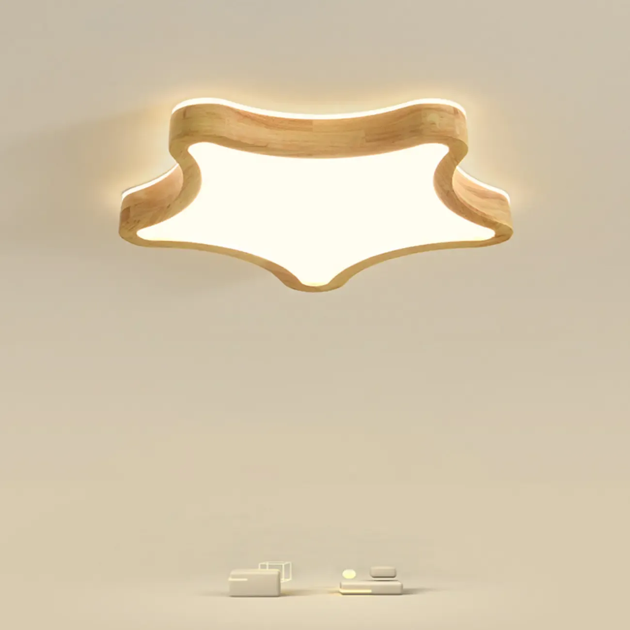 Elegant Natural Finish Star Flush Ceiling Light for Bedroom