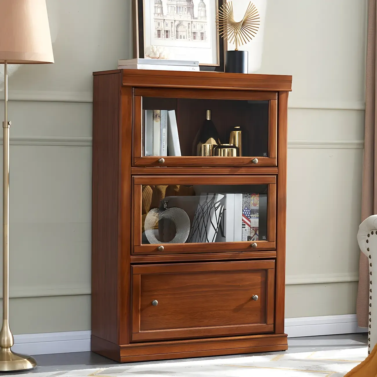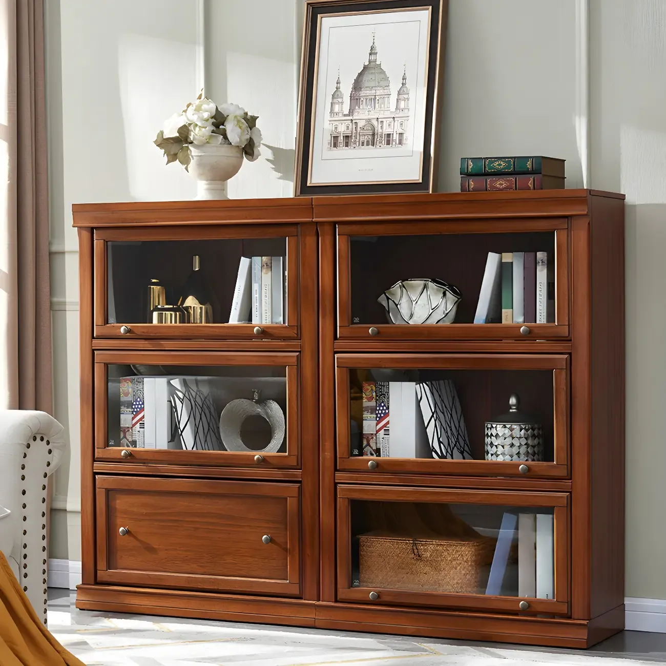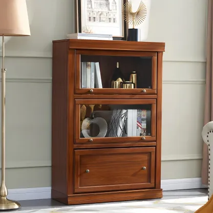 Espresso Wooden Office Bookcase With Glass Doors