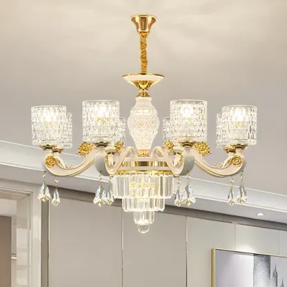 White Gold Cylinder Ripple Glass Chandelier with Crystal