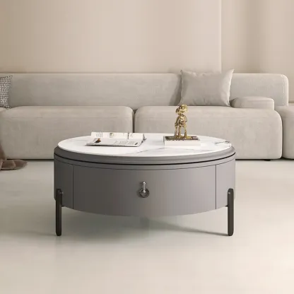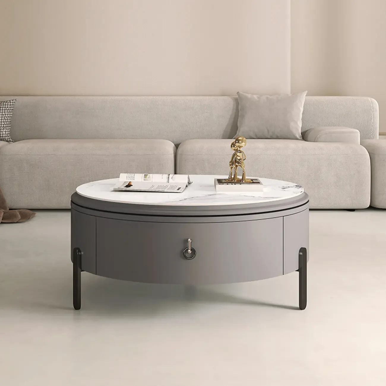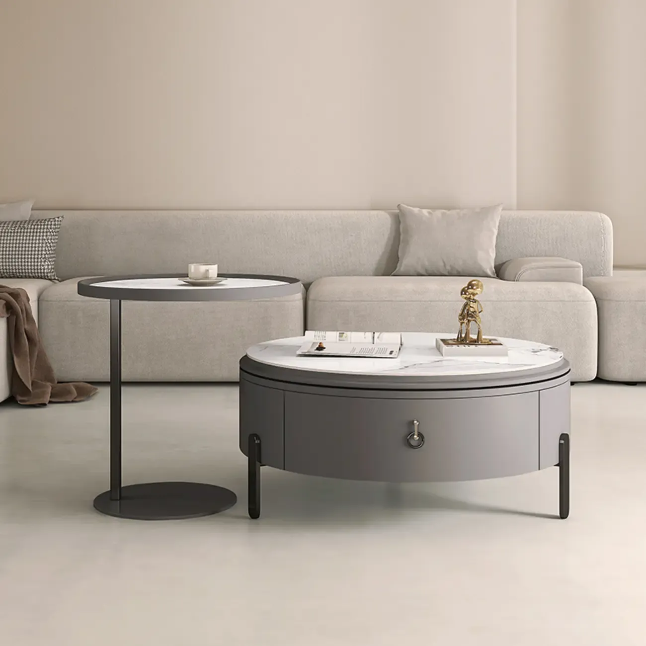 Gray Round Nesting Coffee Table with Storage, Lift Top