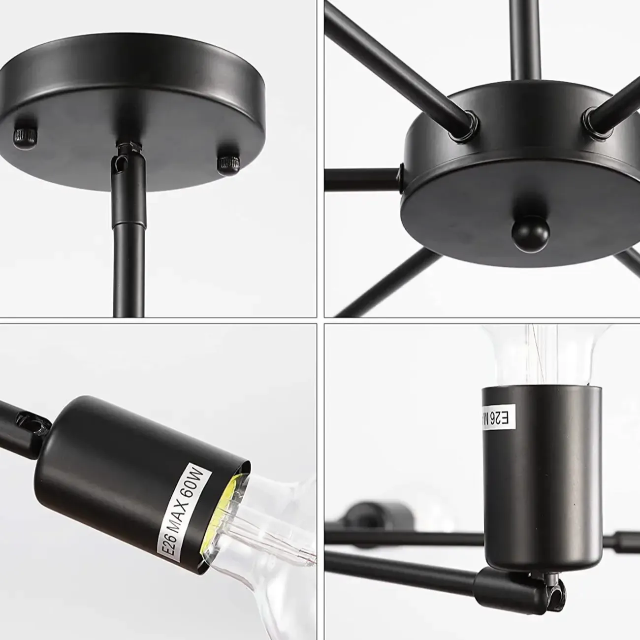 Industrial Black Metal Minimalist Sputnik Chandelier