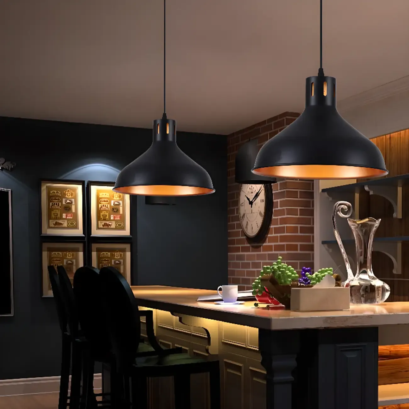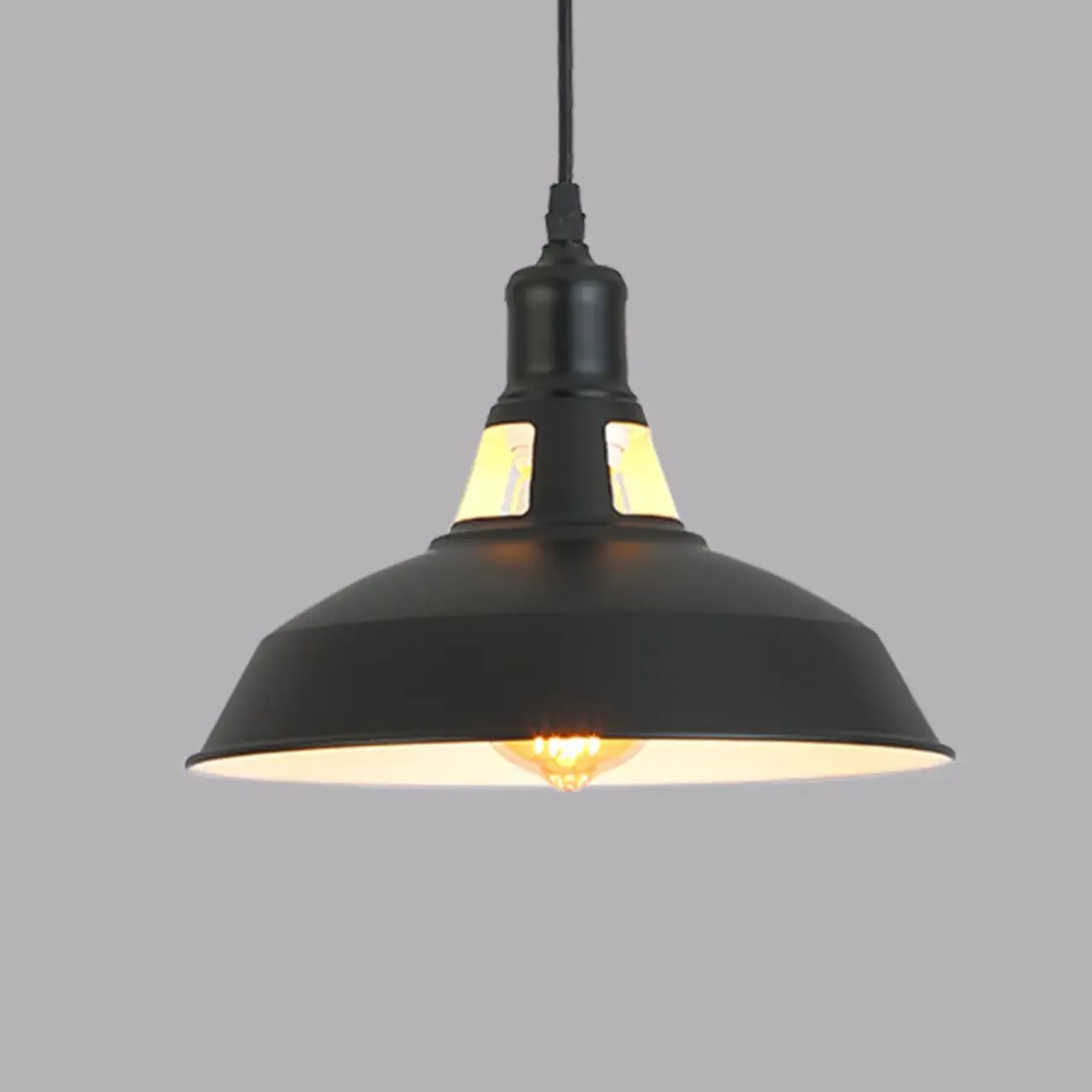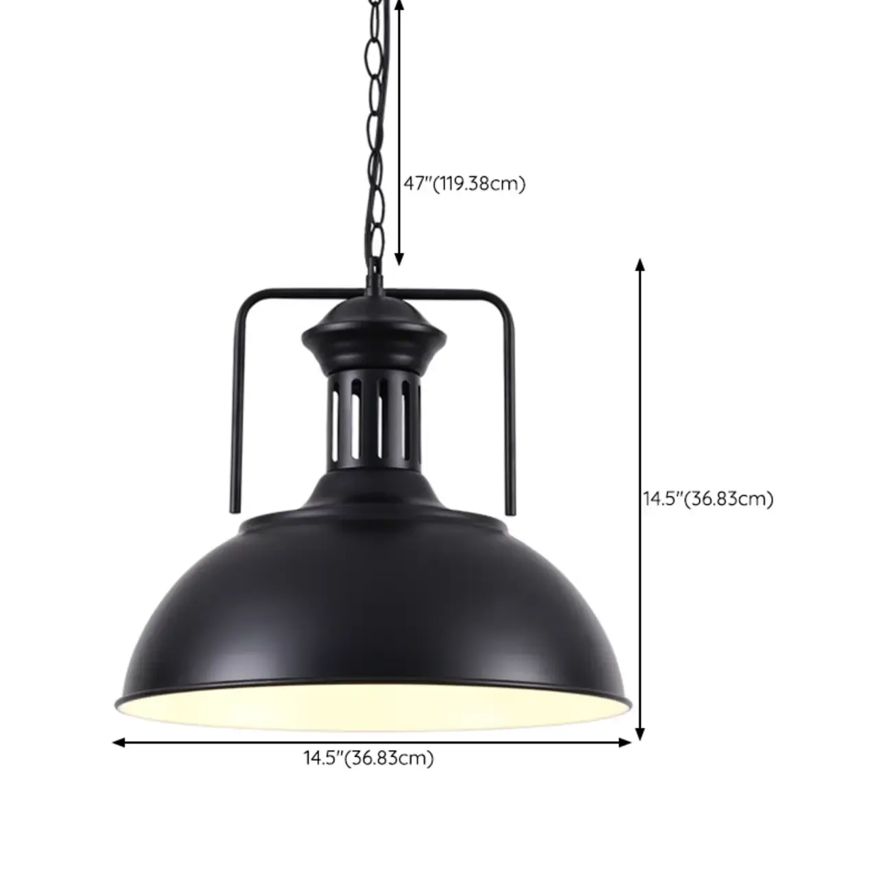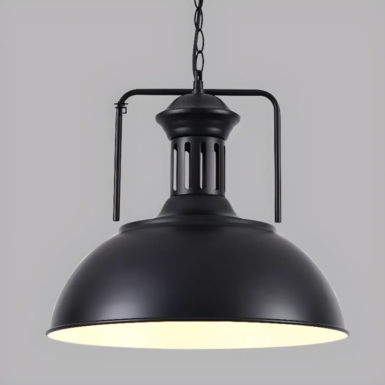 Industrial Black Metal Dome Cord Chain Pendant Light