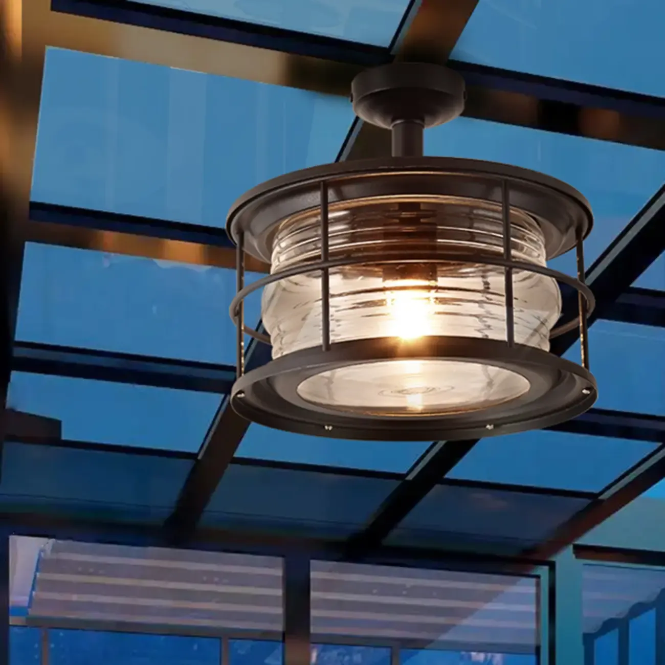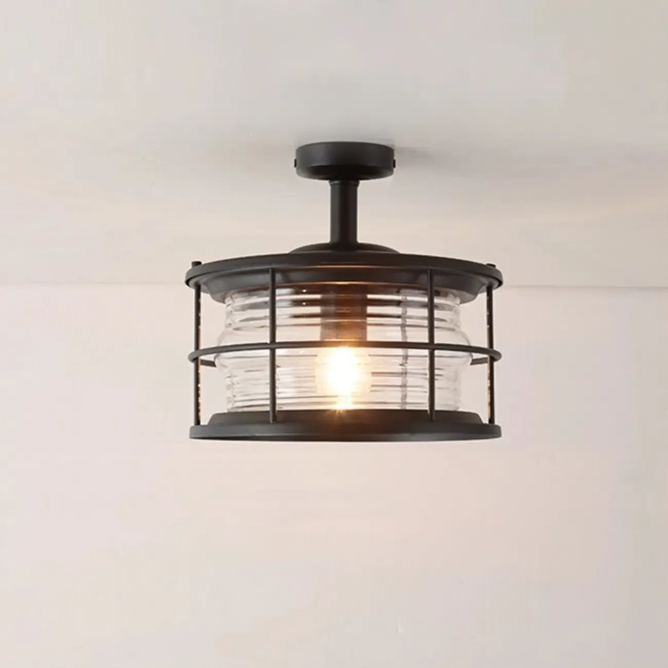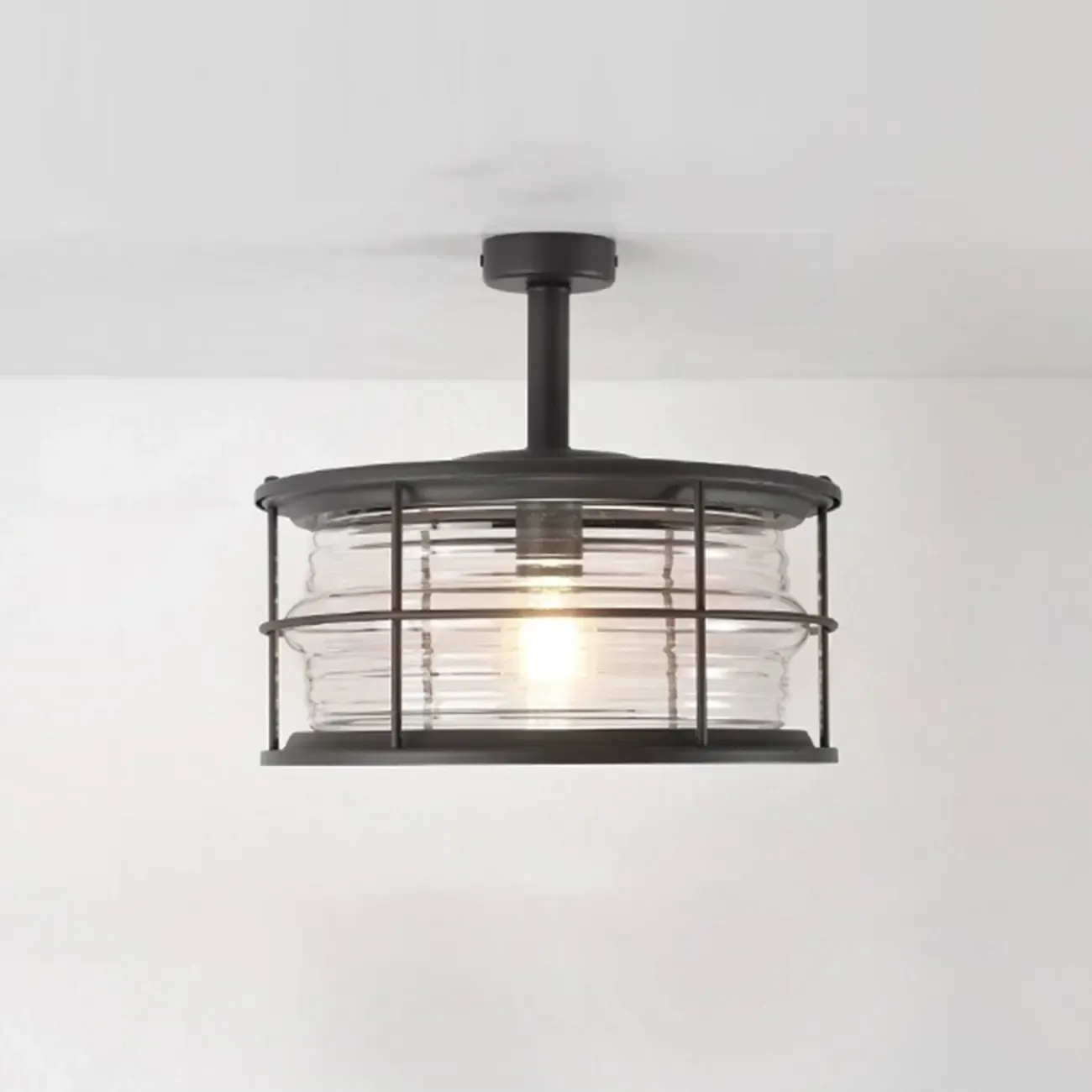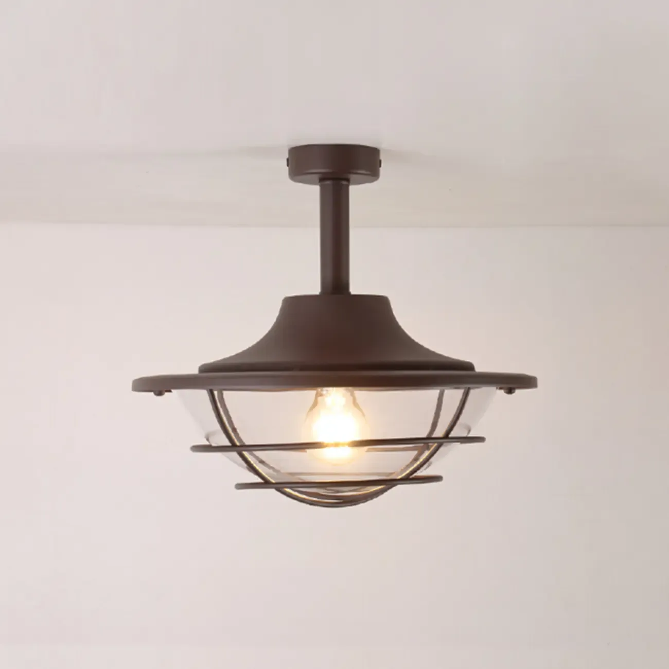 Industrial Outdoor Glass Shade Metal Semi Flush Ceiling Light
