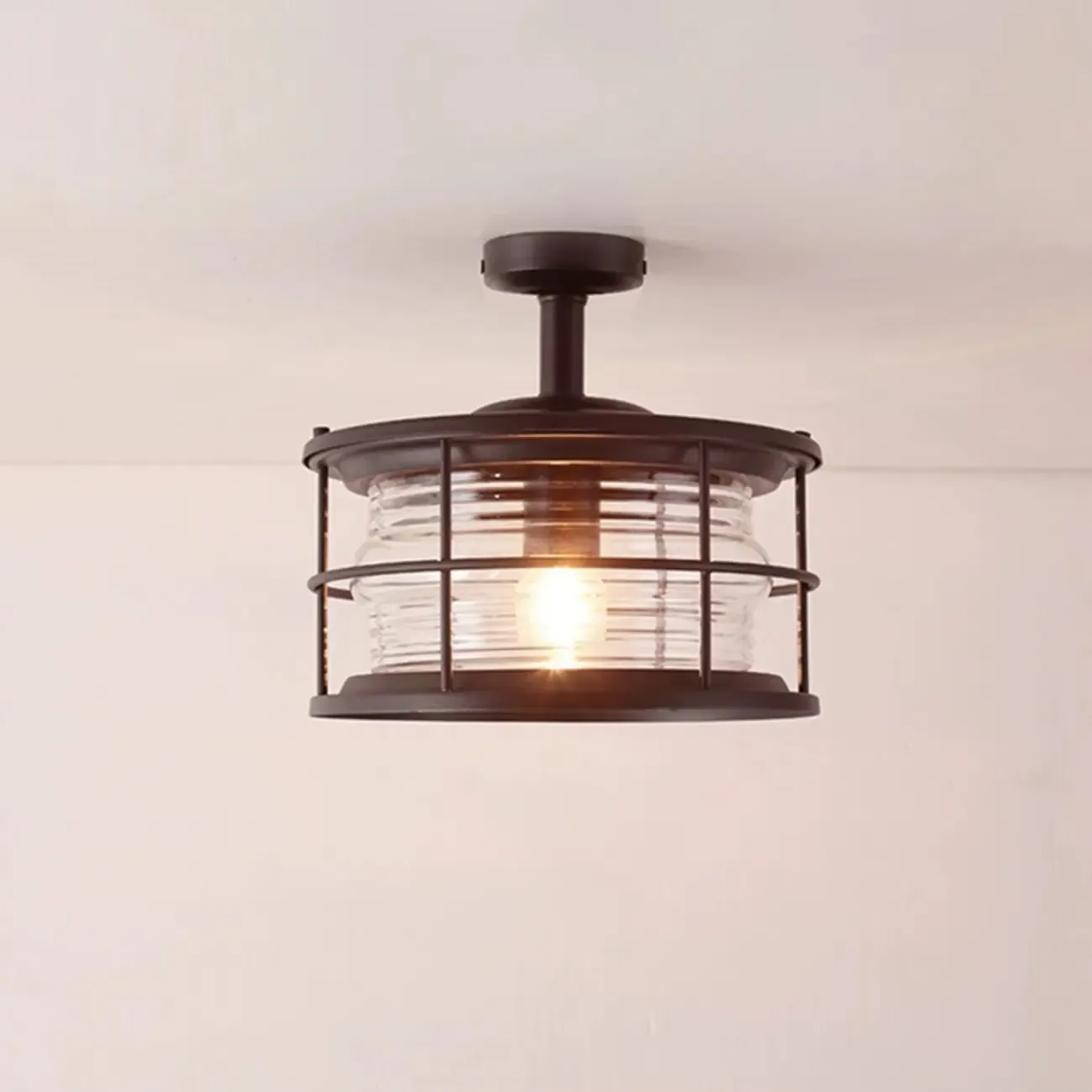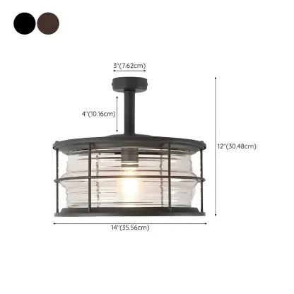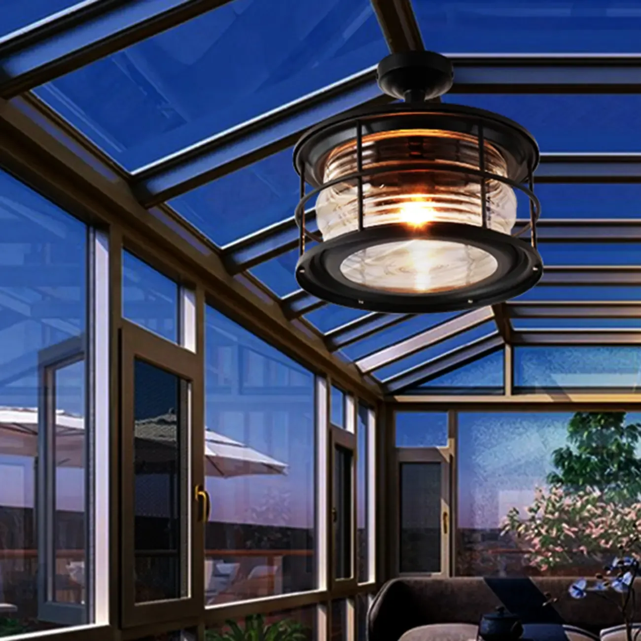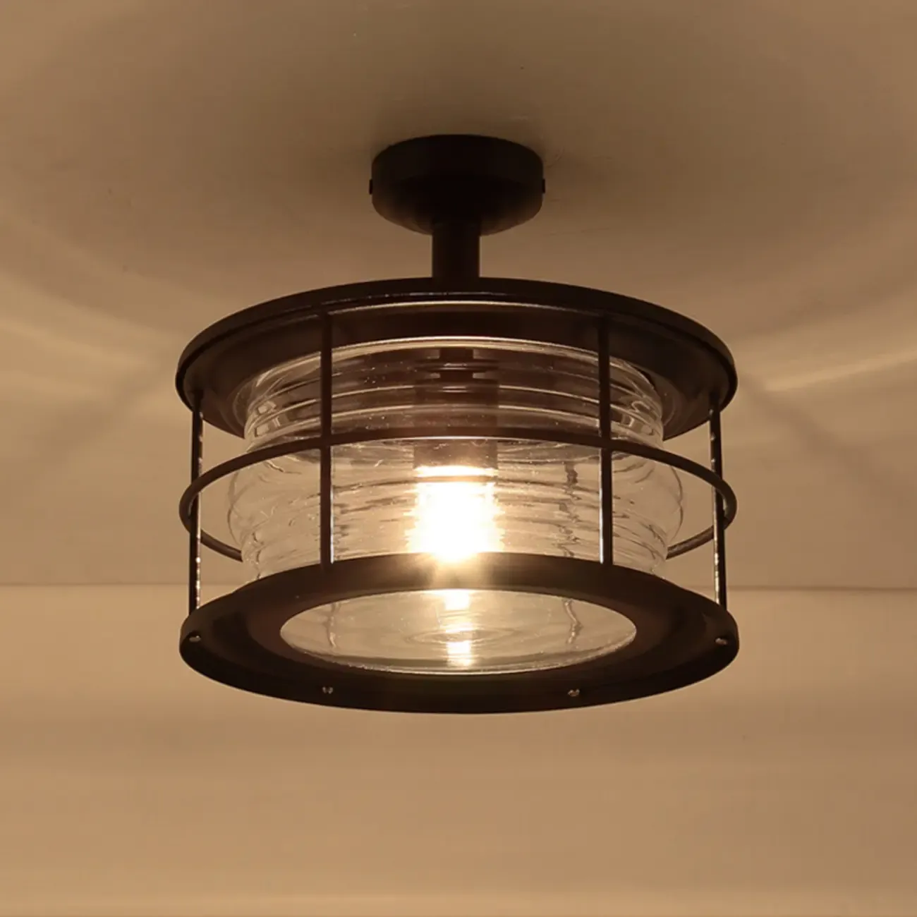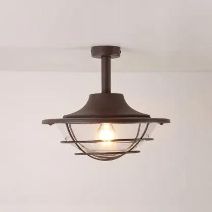 Industrial Outdoor Glass Shade Metal Semi Flush Ceiling Light