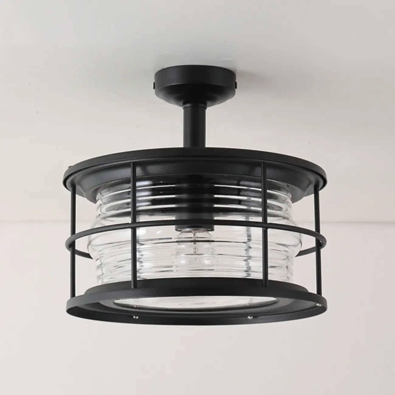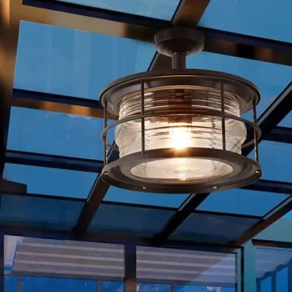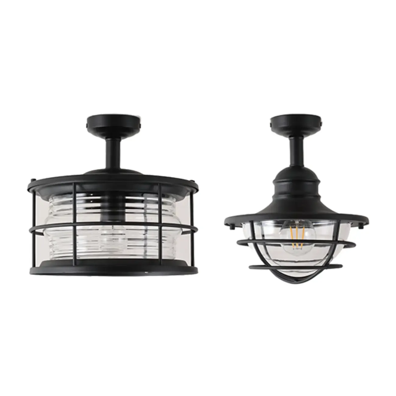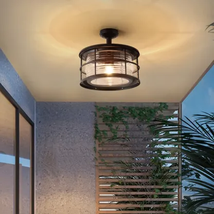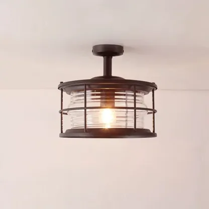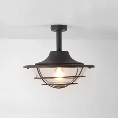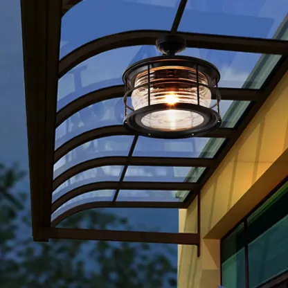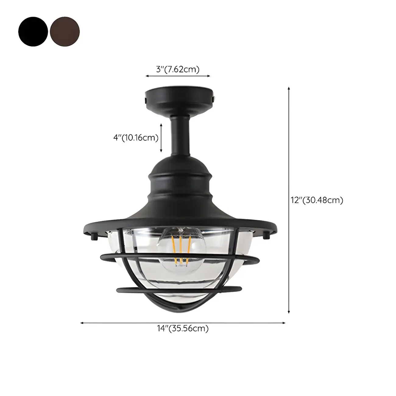 Industrial Outdoor Glass Shade Metal Semi Flush Ceiling Light