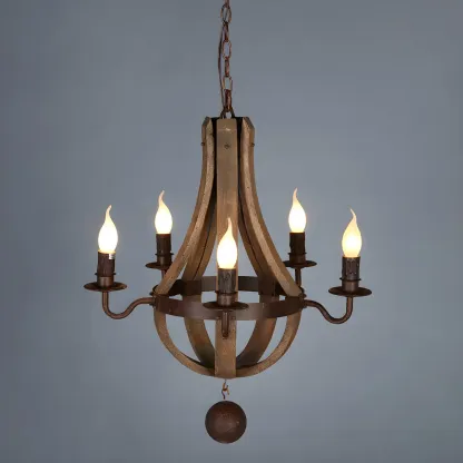 Rustic Wood Shadeless Candelabra Chandelier