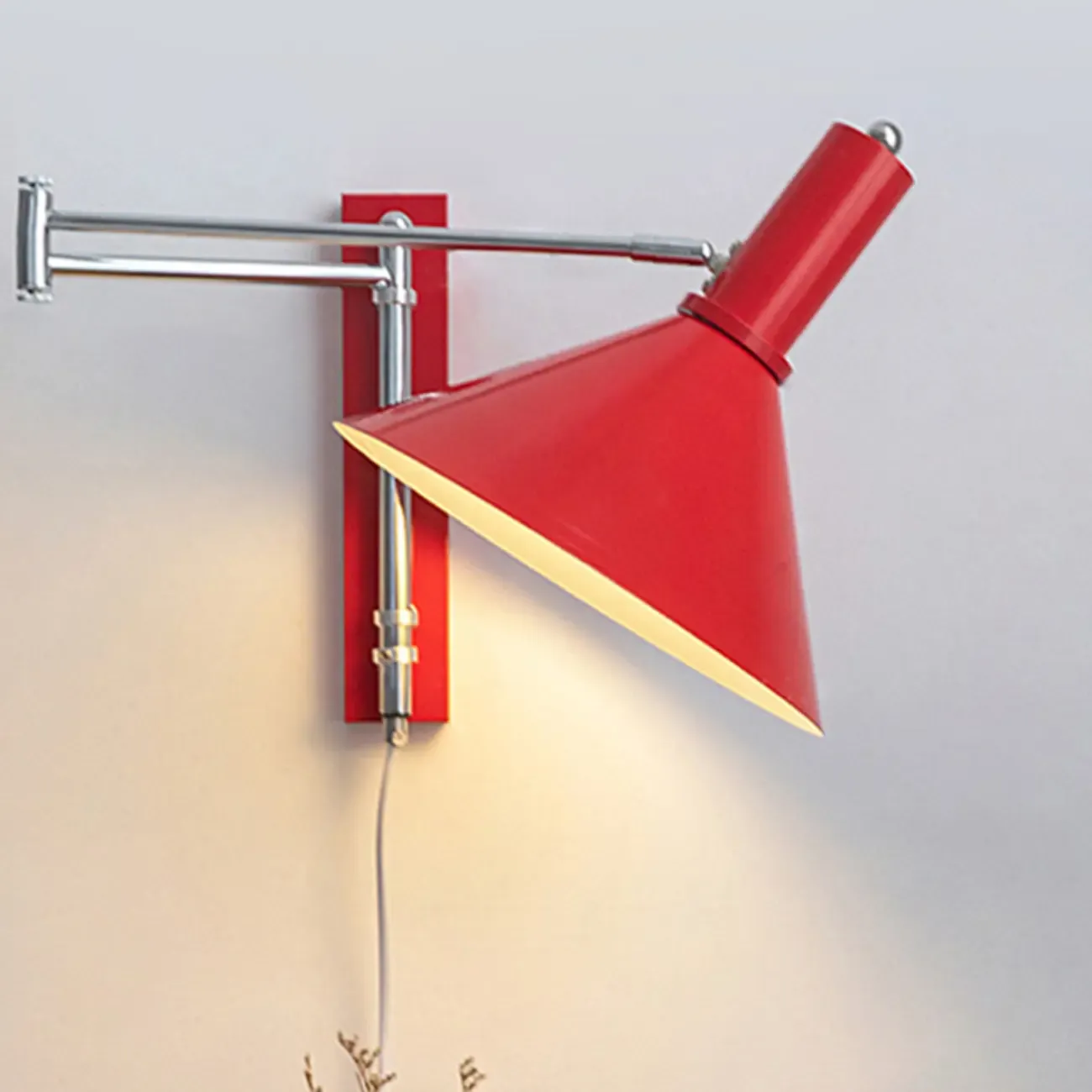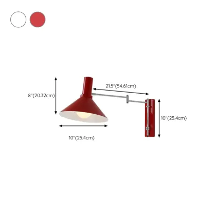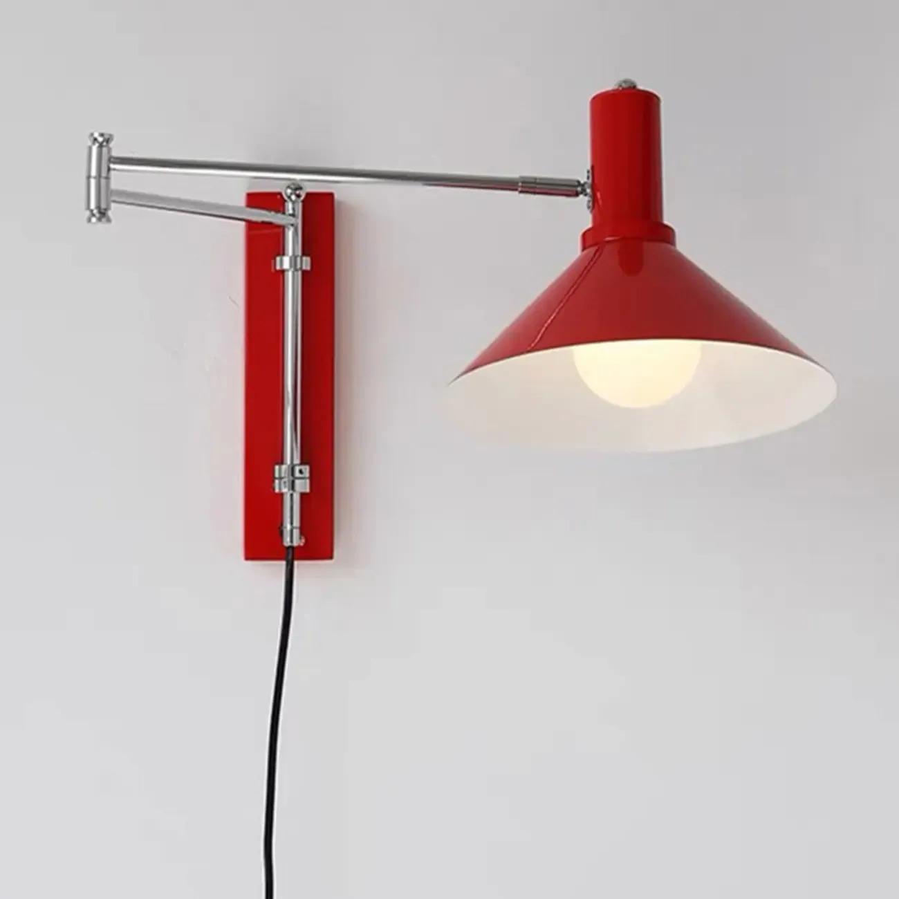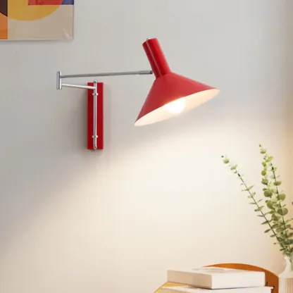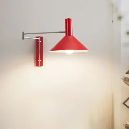 Medium Adjustable Red Swing Arm Wall Light for Reading Nook