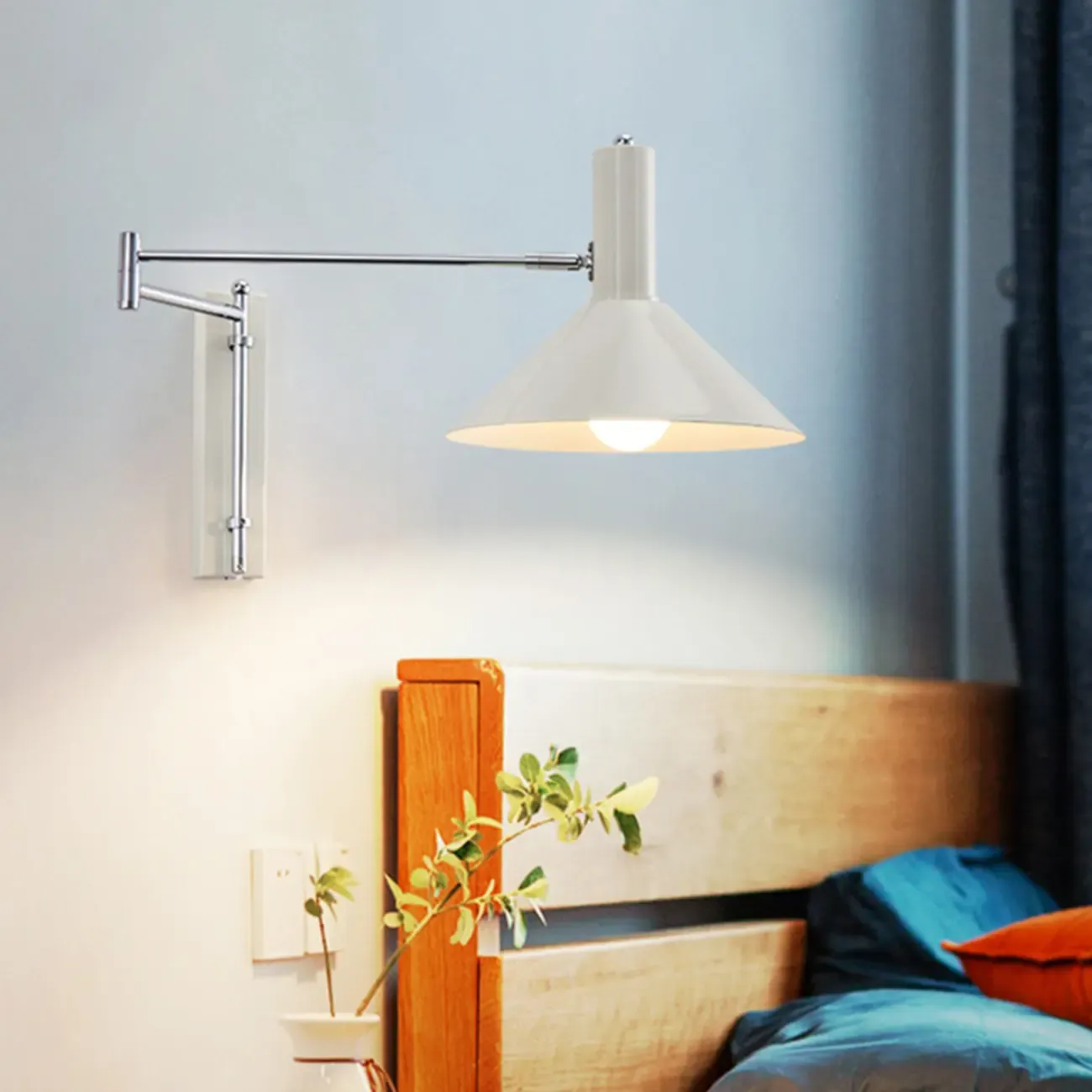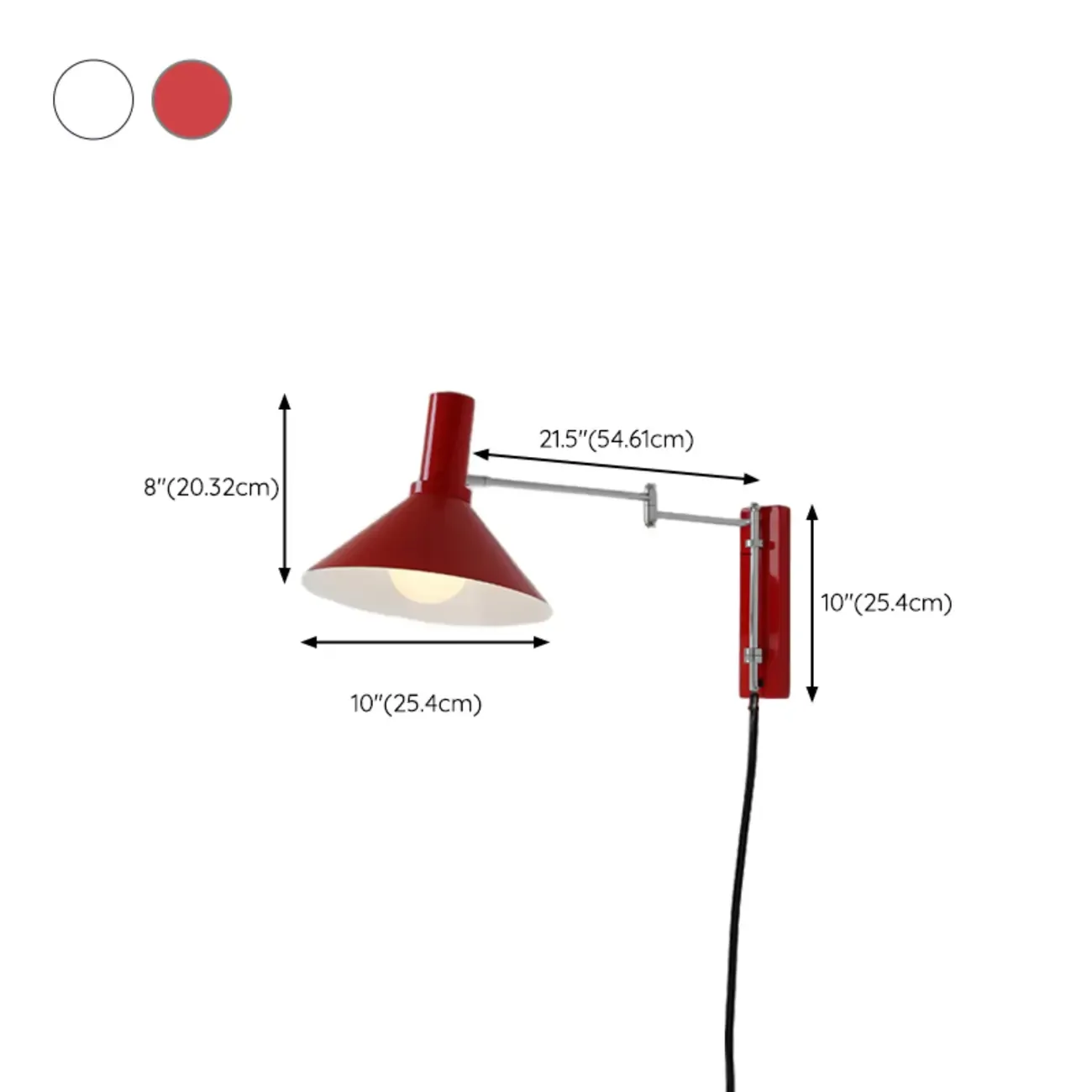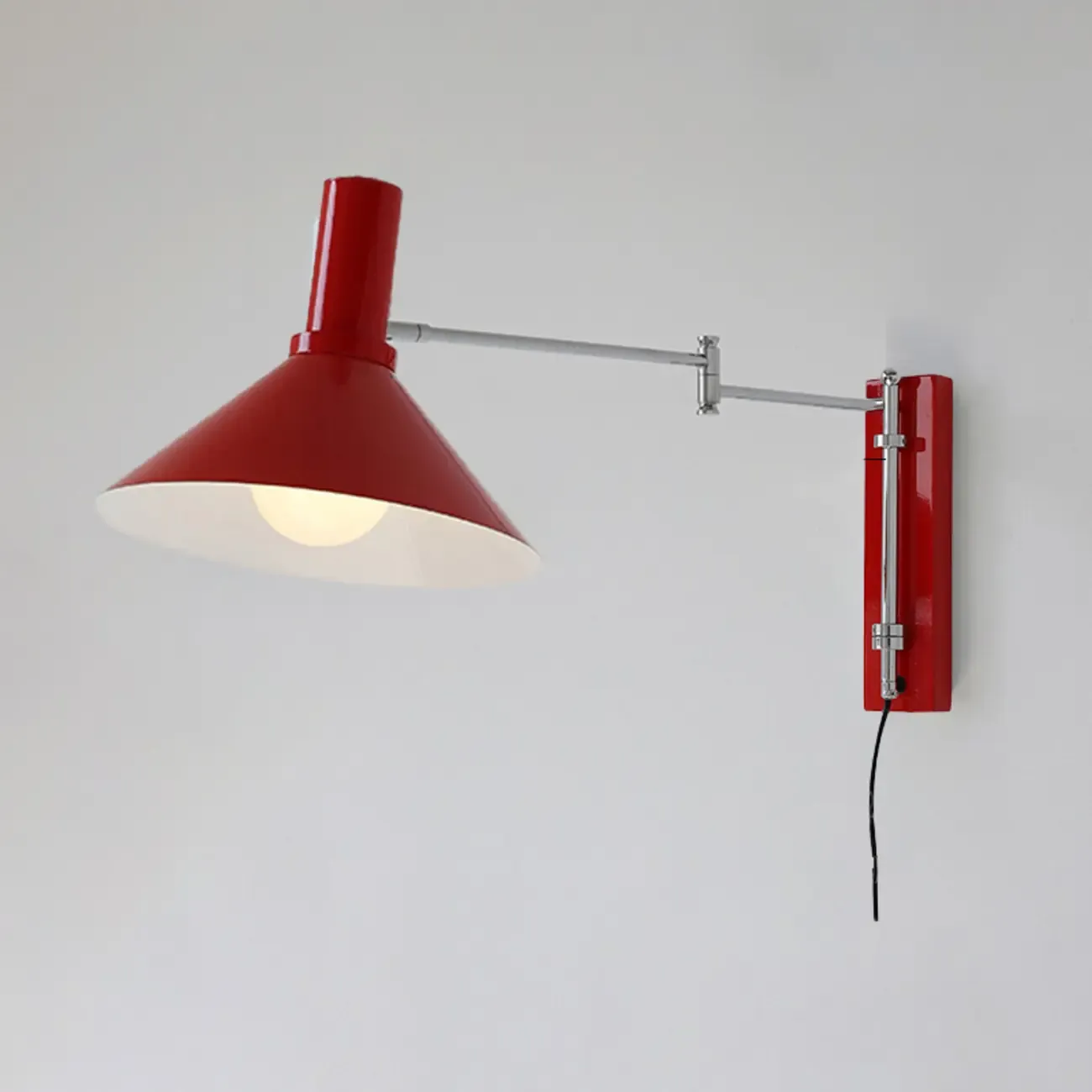 Medium Adjustable Red Swing Arm Wall Light for Reading Nook