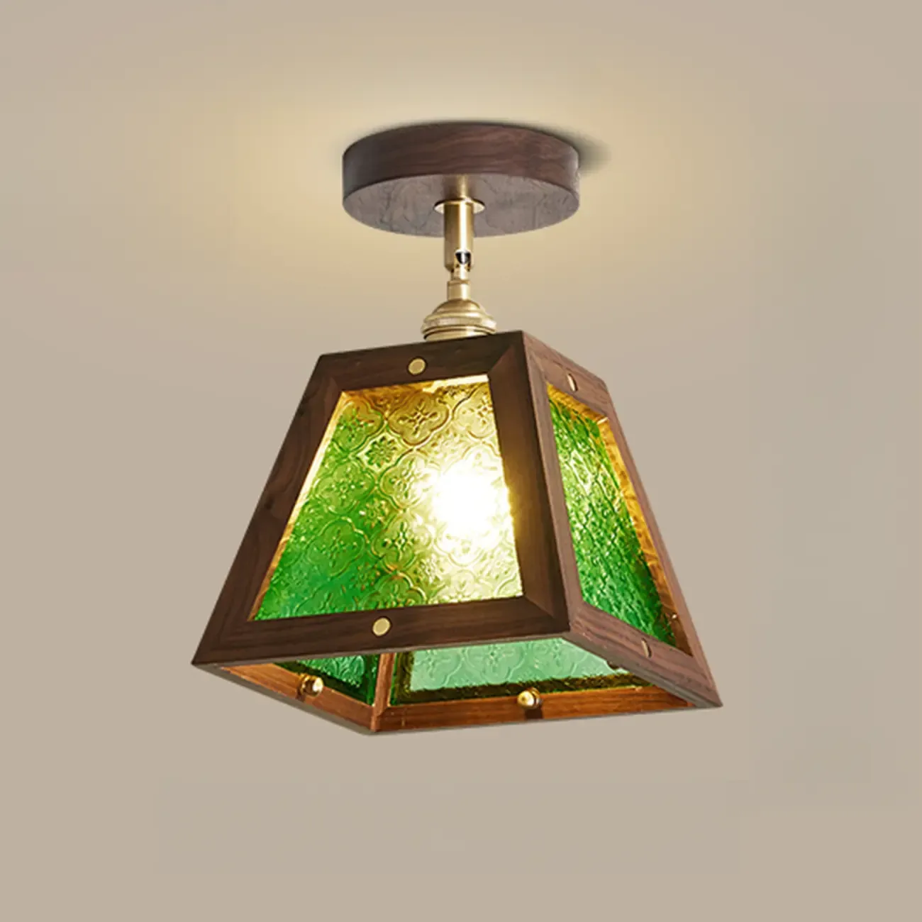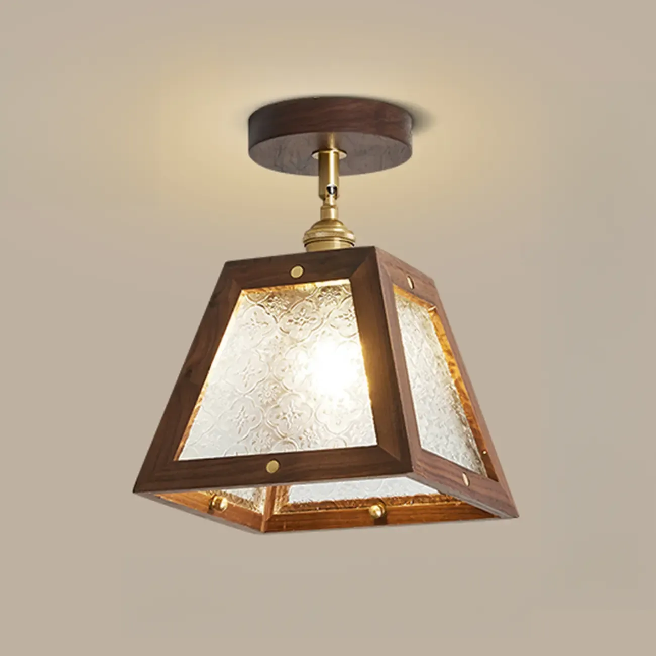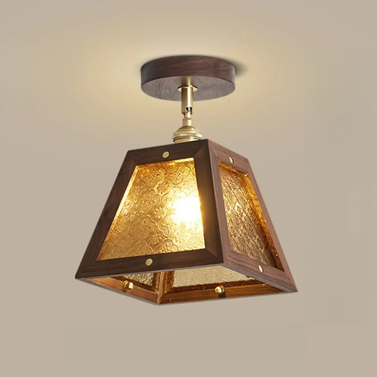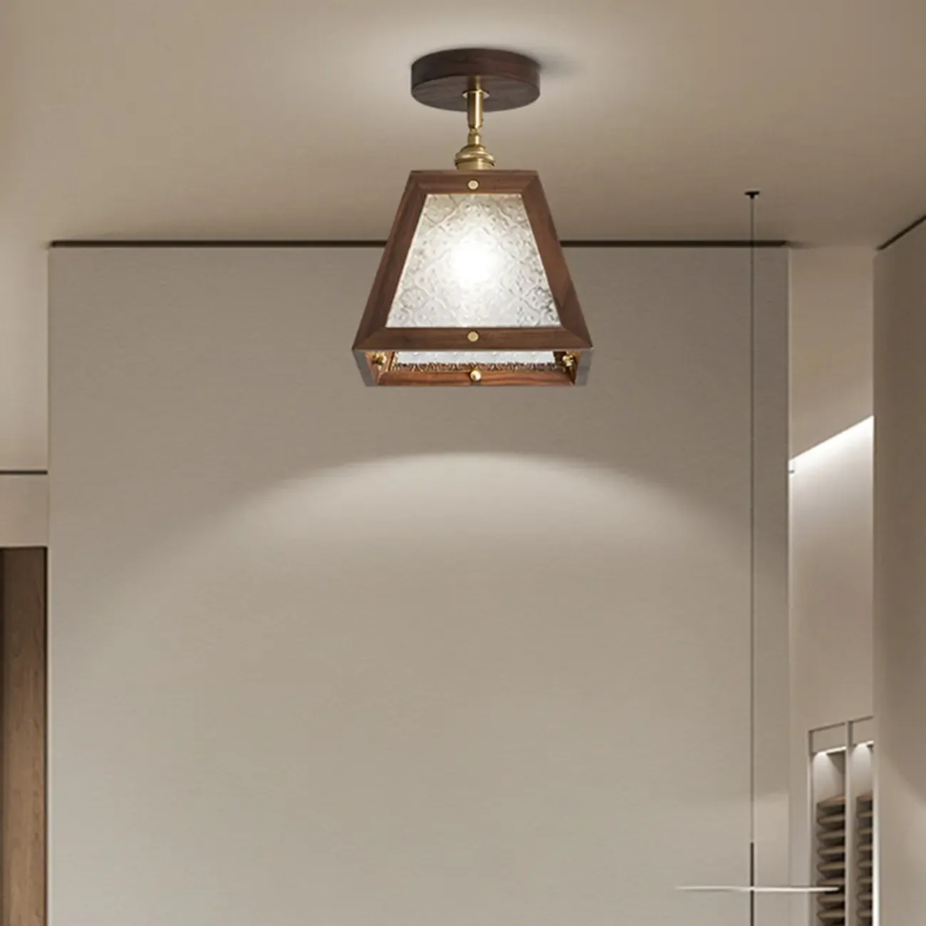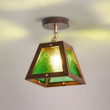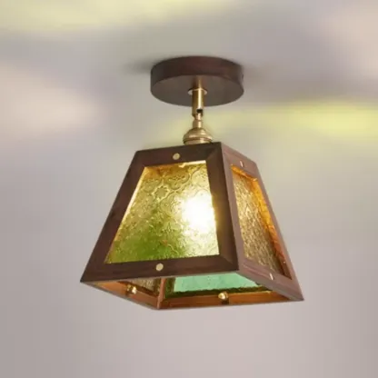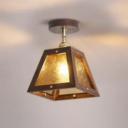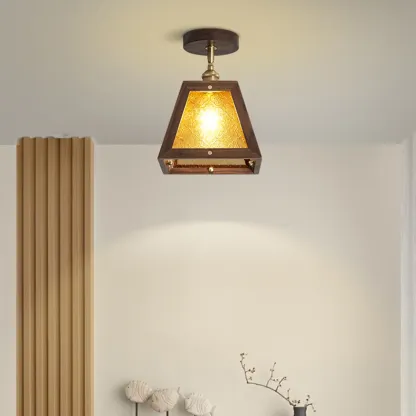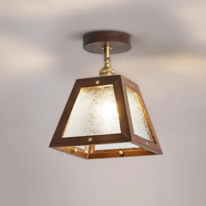 Mini Trapezoidal Walnut Semi-Flush Ceiling Light for Home