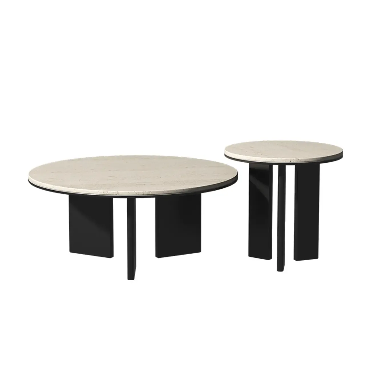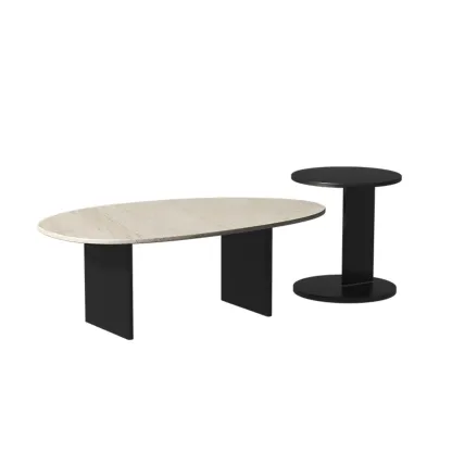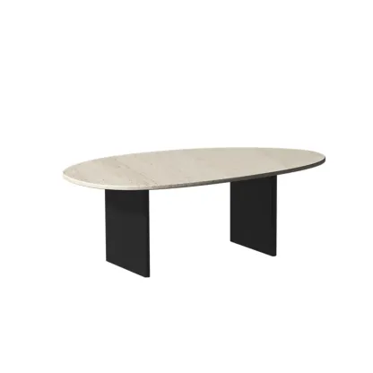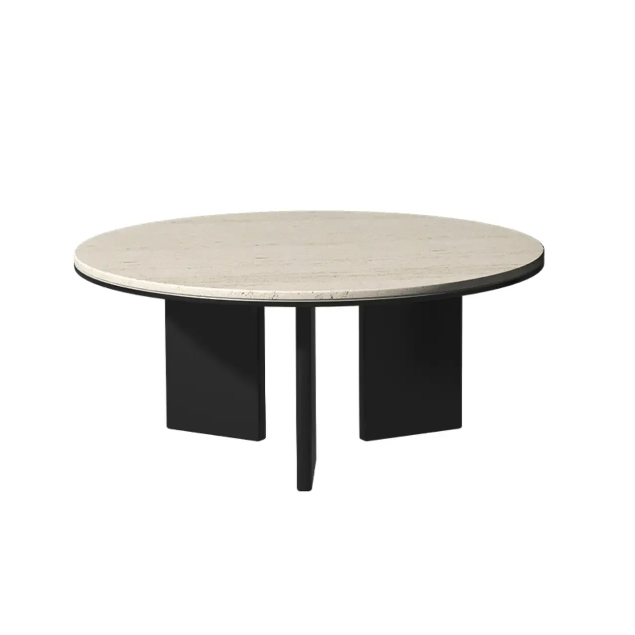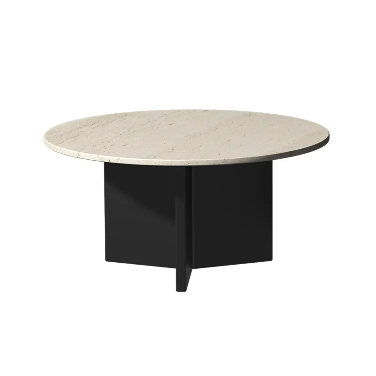 Minimalist Beige Travertine Round Coffee Table in Wood Base