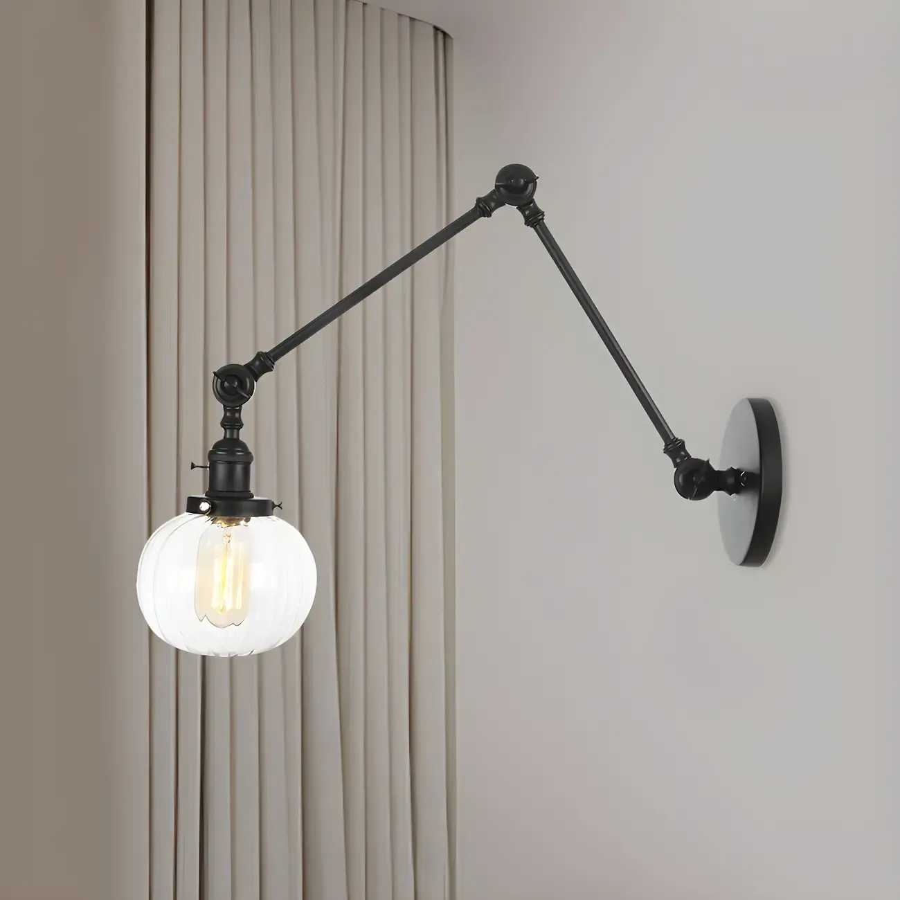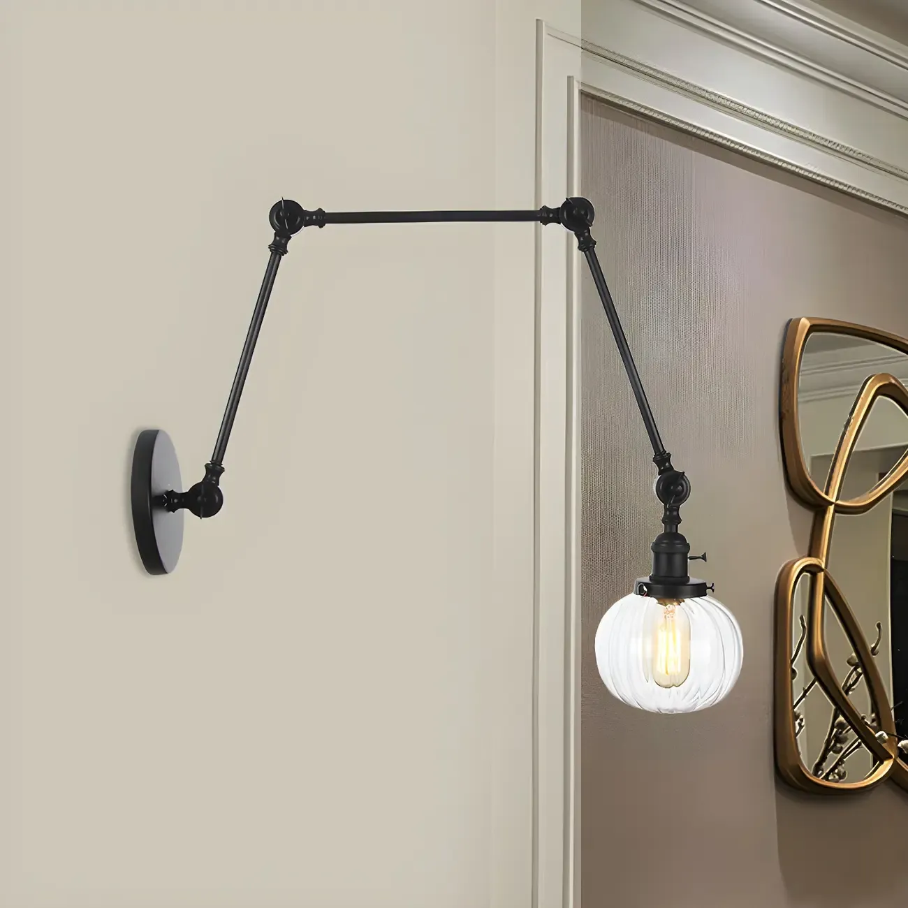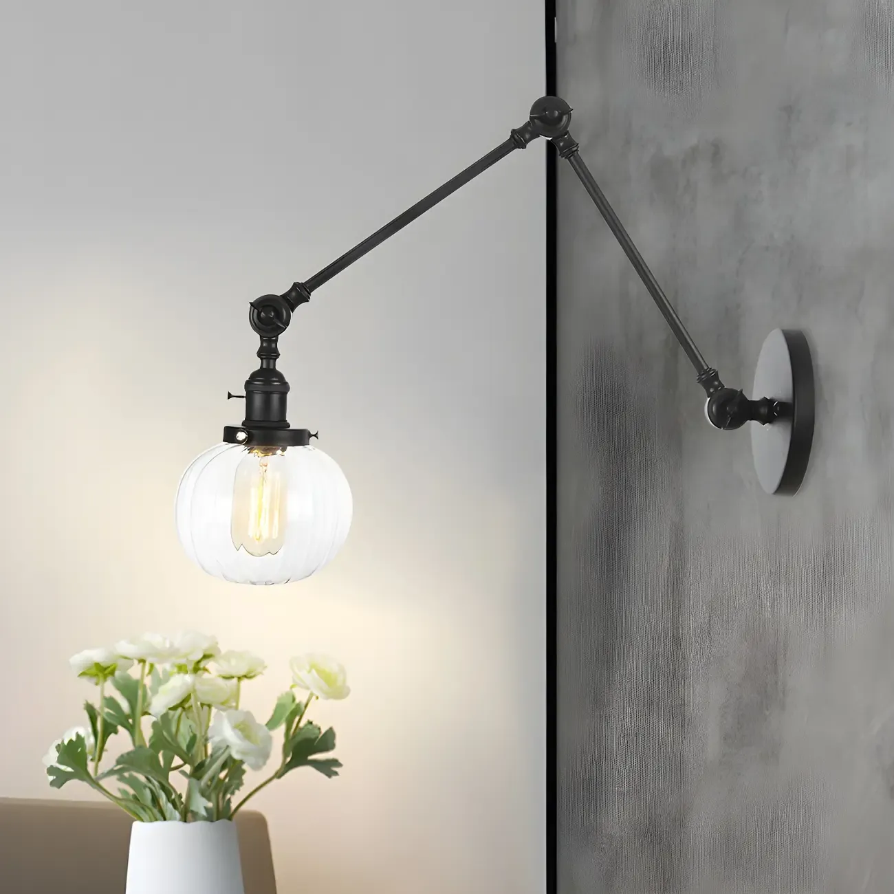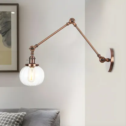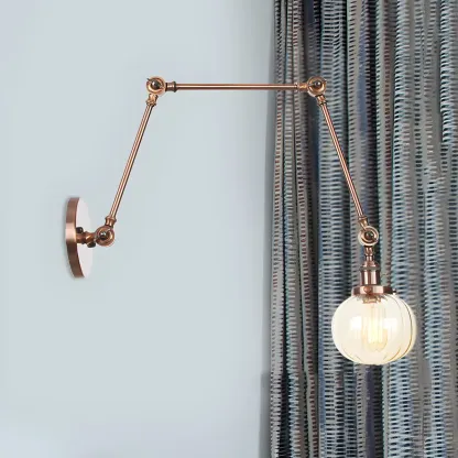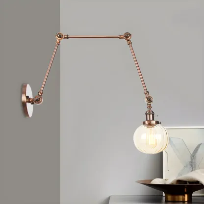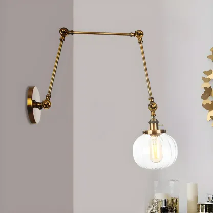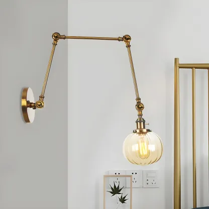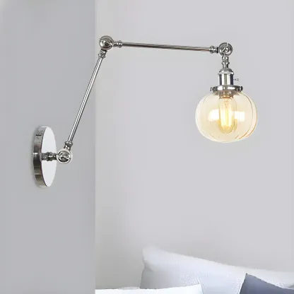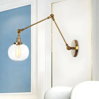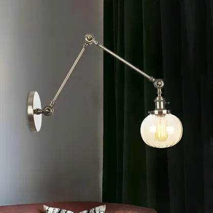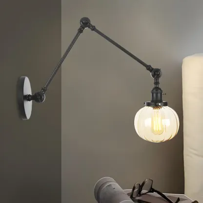 Minimalist Black Adjustable Wall Lamp with Glass Lampshade