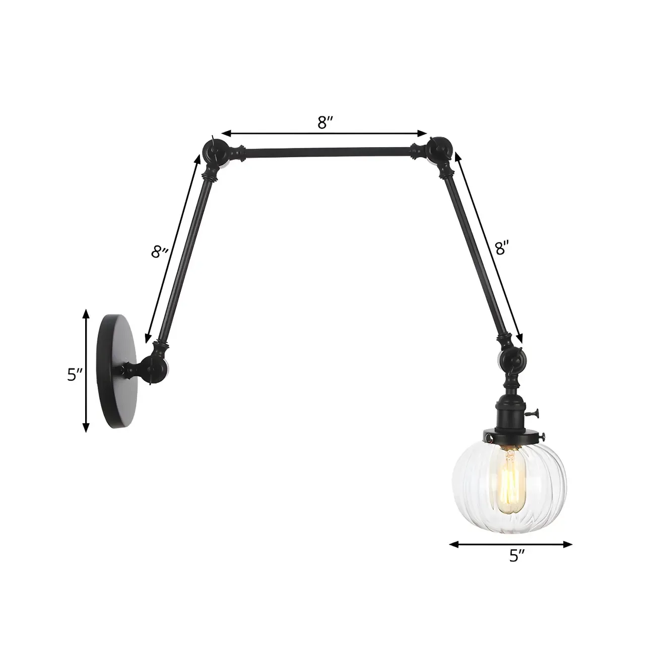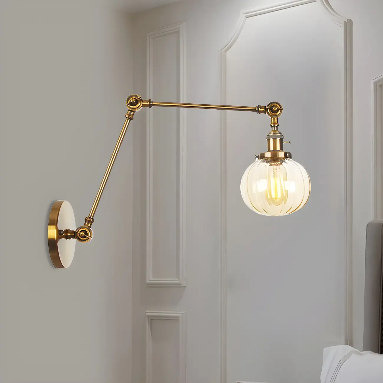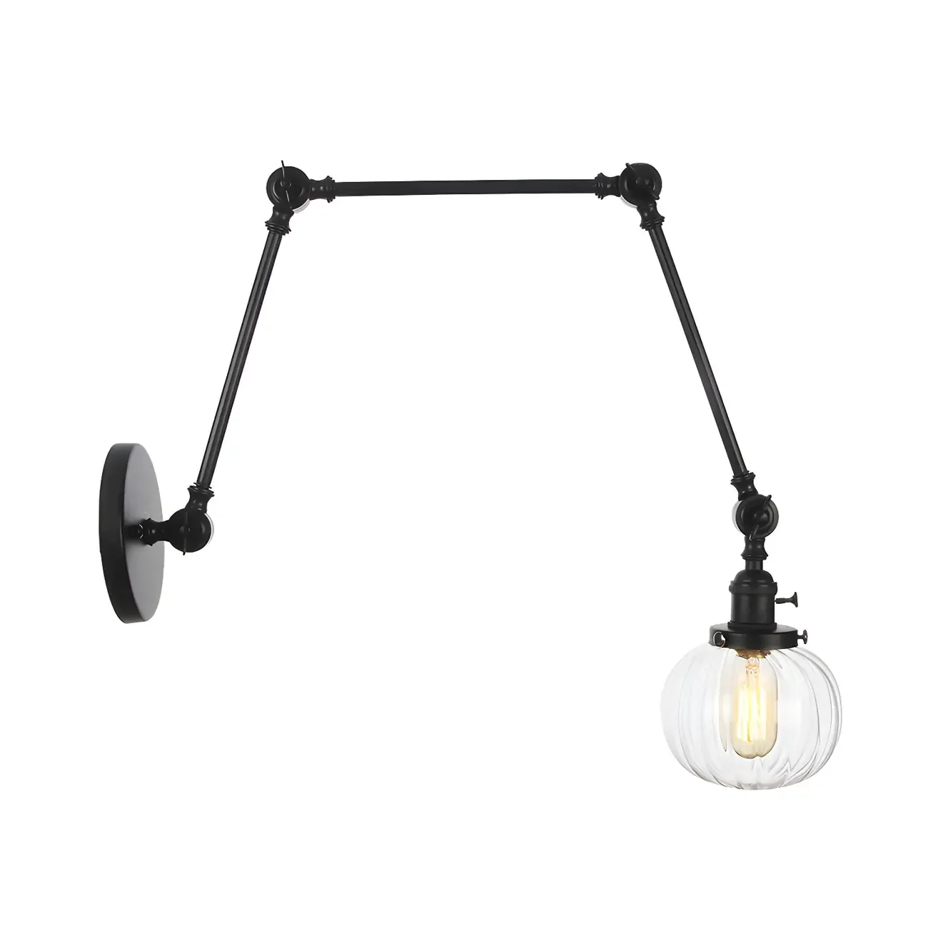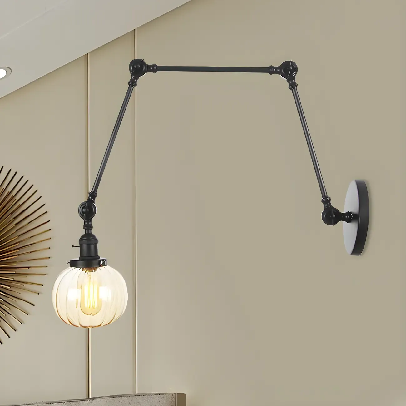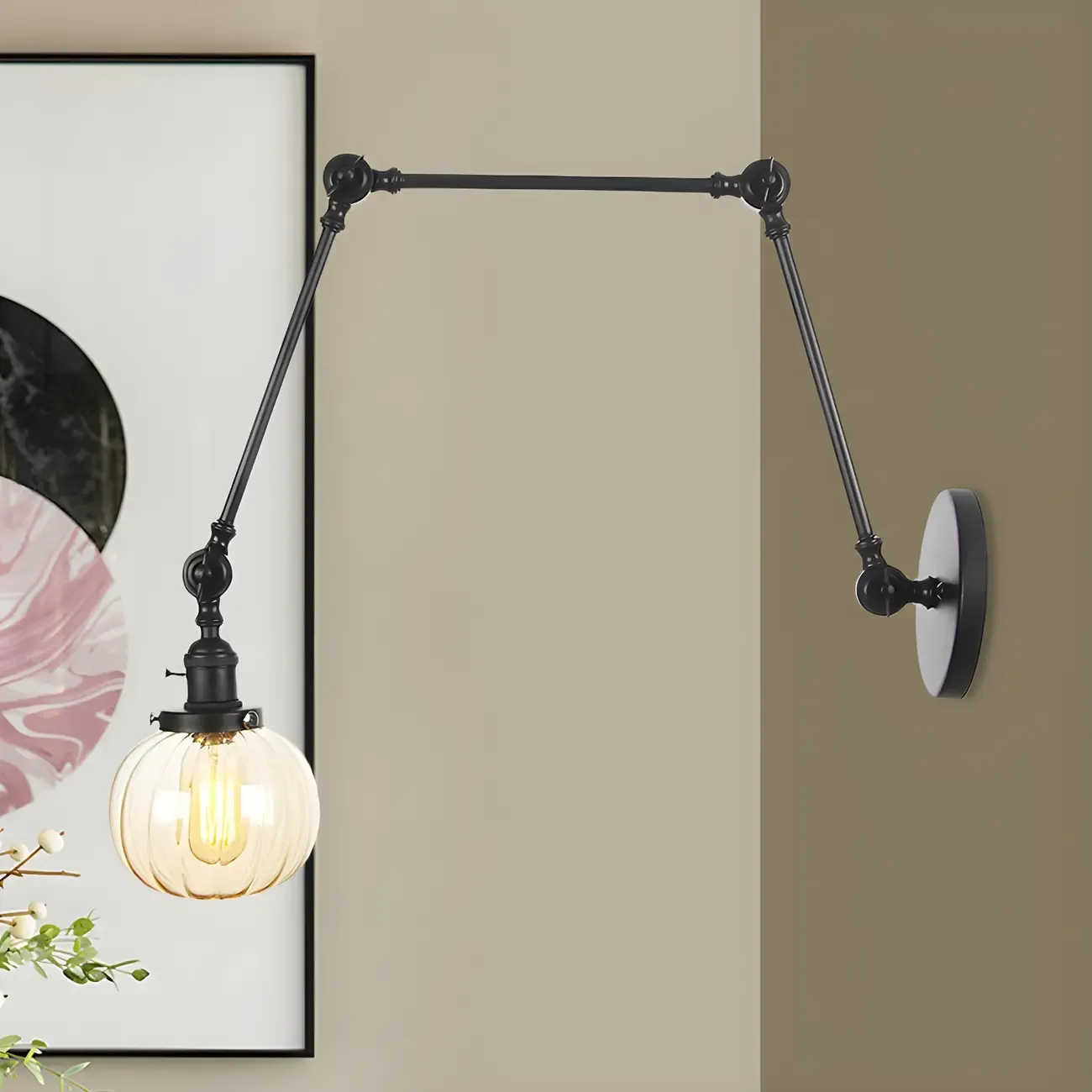 Minimalist Black Adjustable Wall Lamp with Glass Lampshade