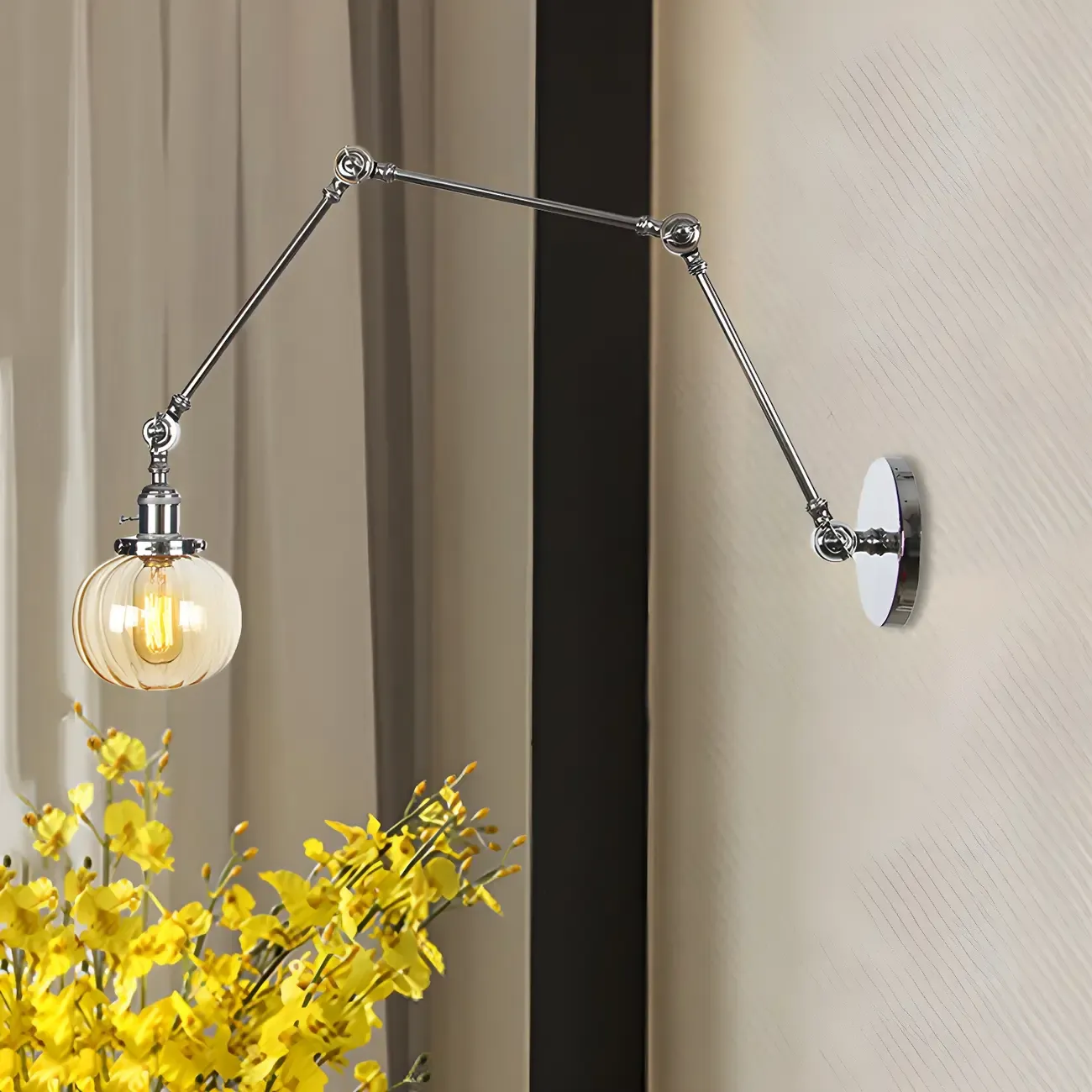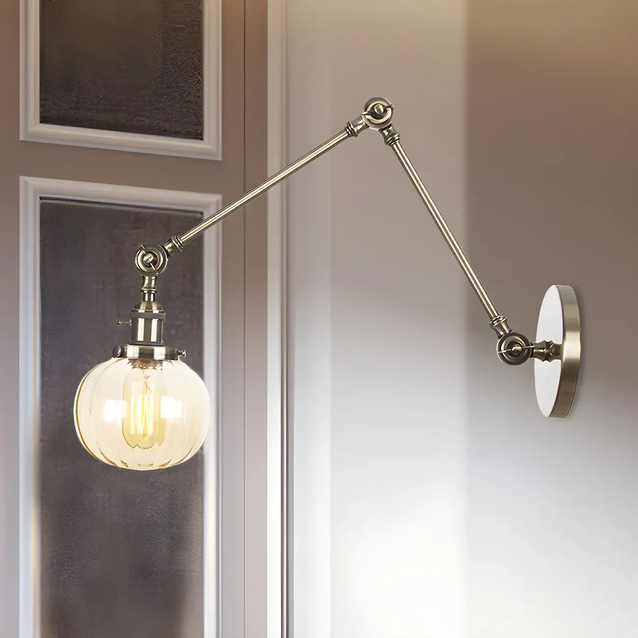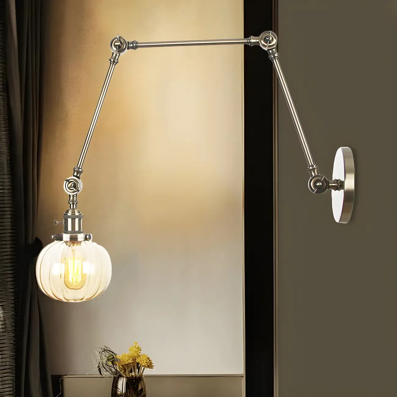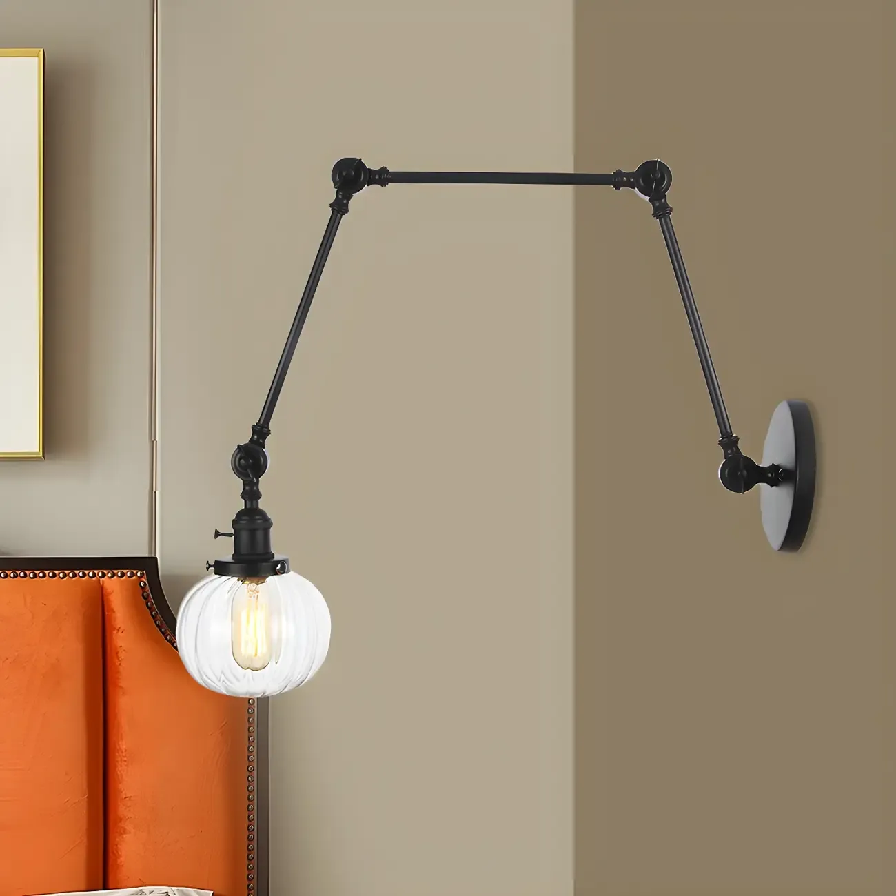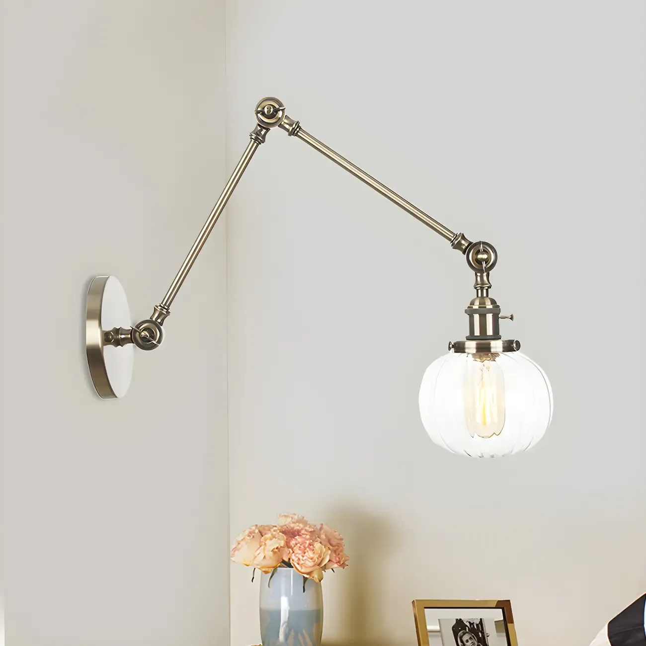 Minimalist Black Adjustable Wall Lamp with Glass Lampshade