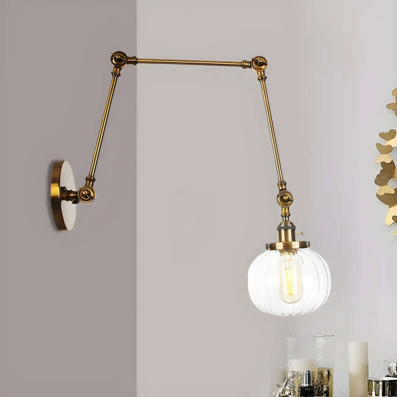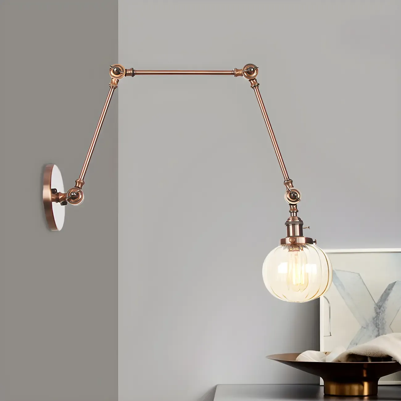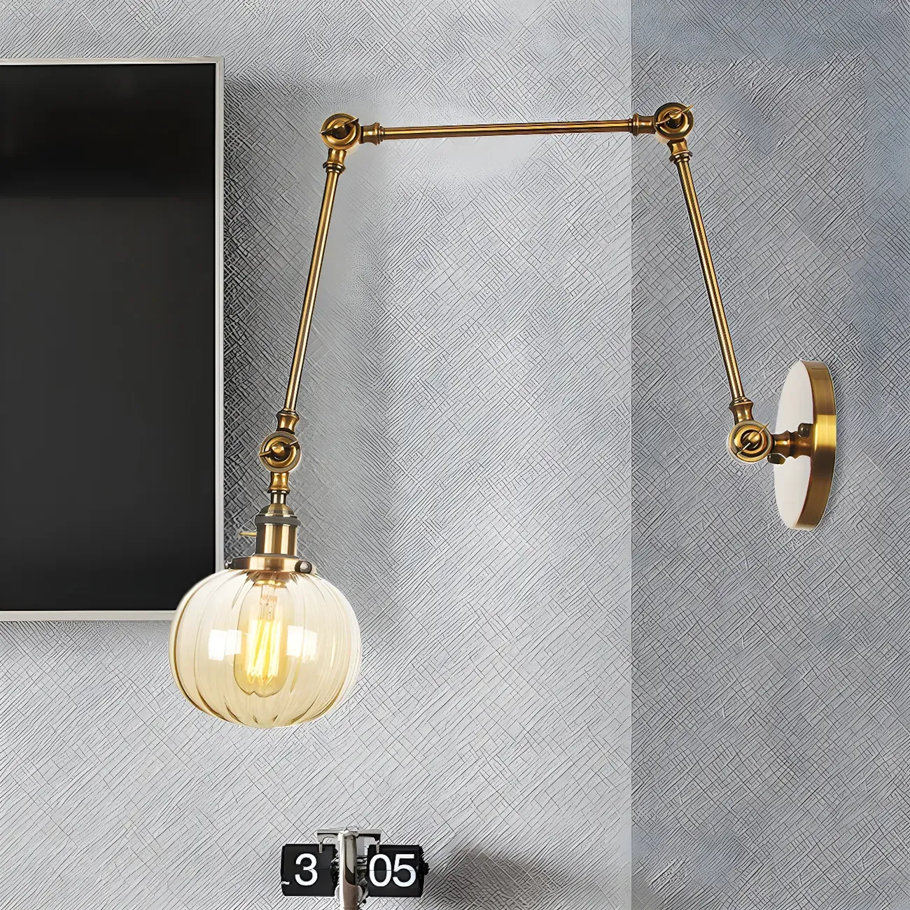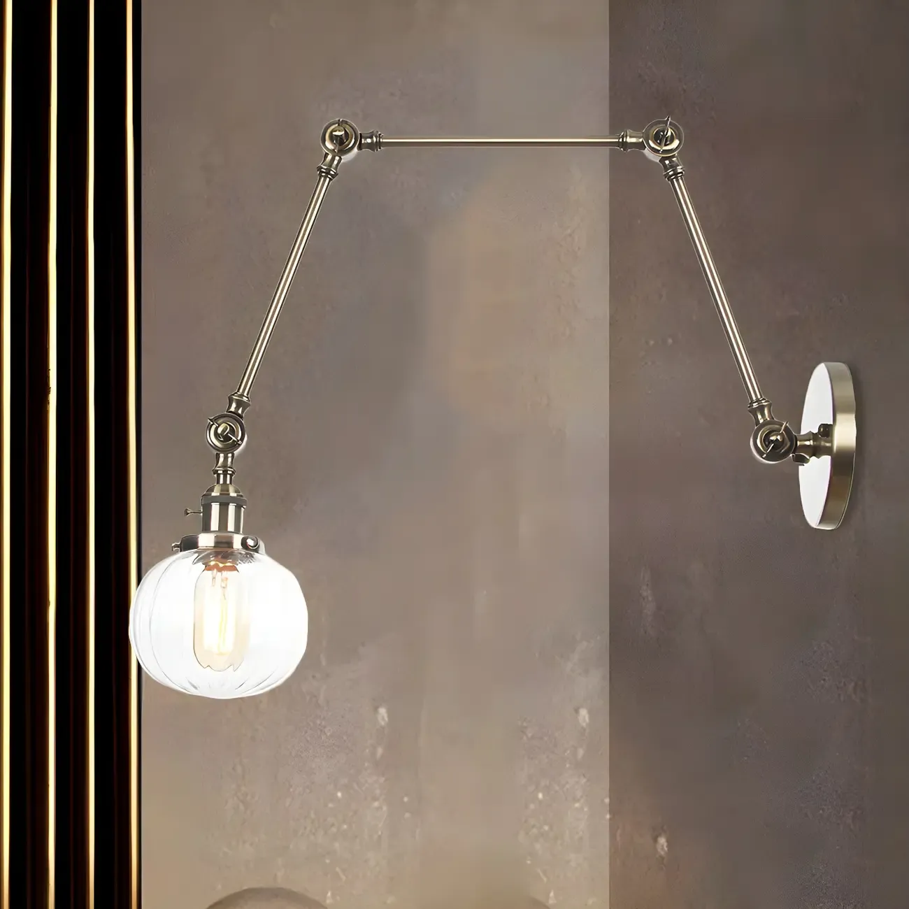 Minimalist Black Adjustable Wall Lamp with Glass Lampshade