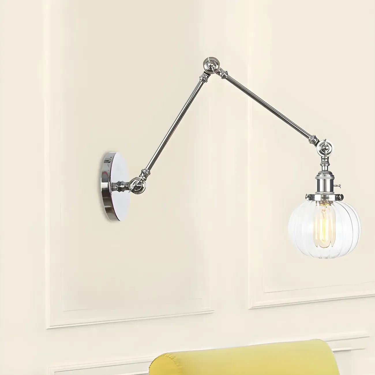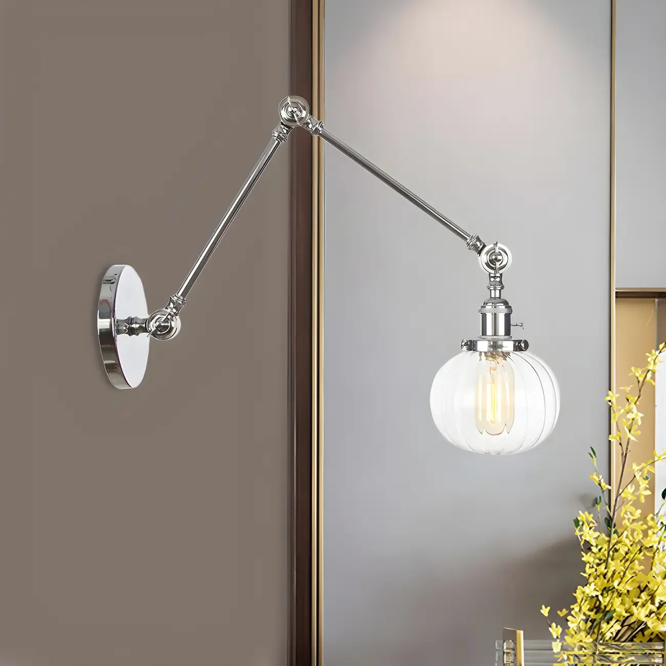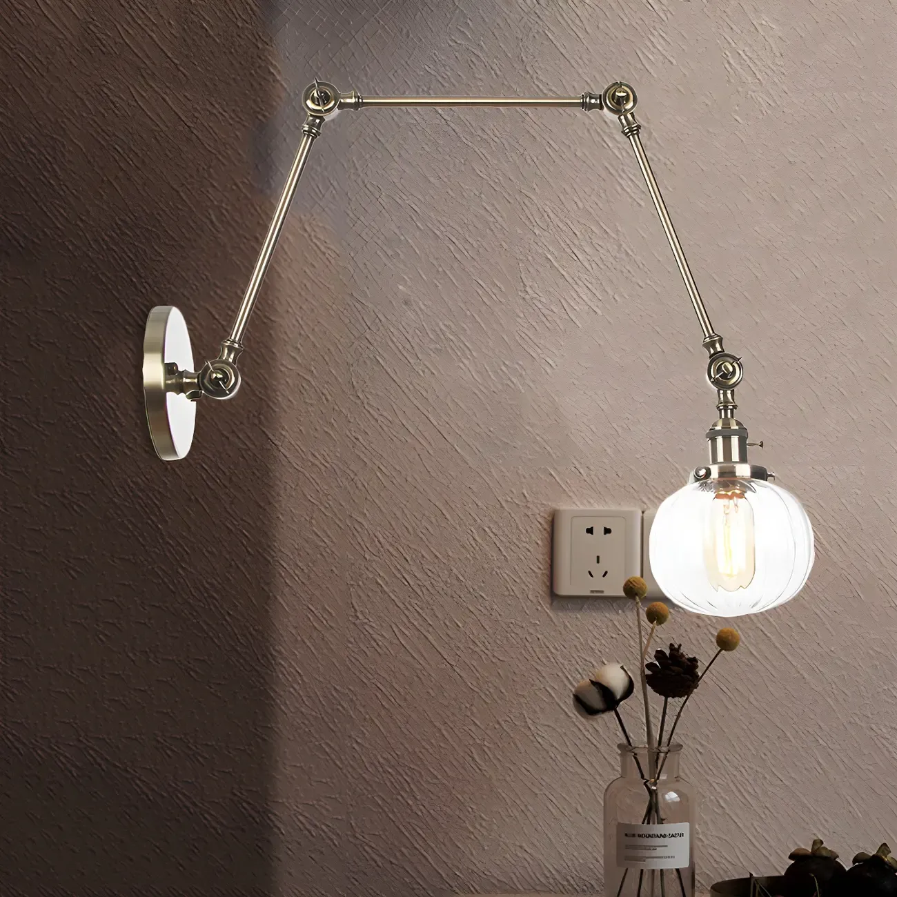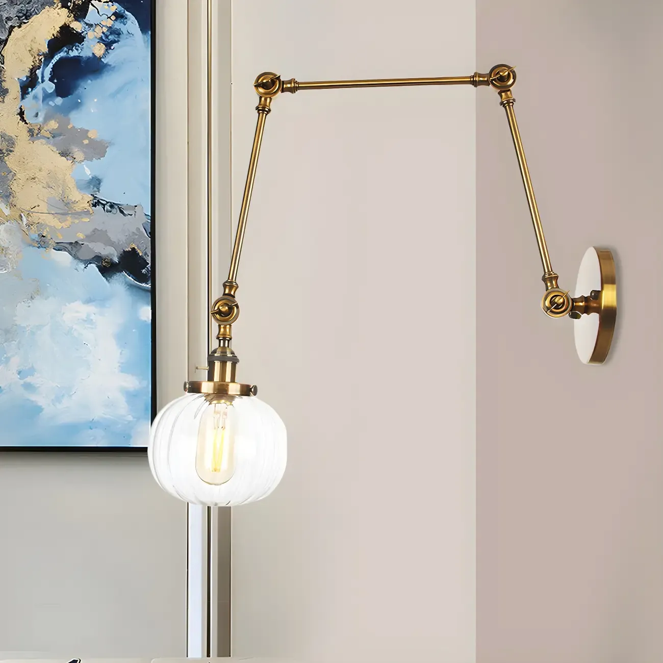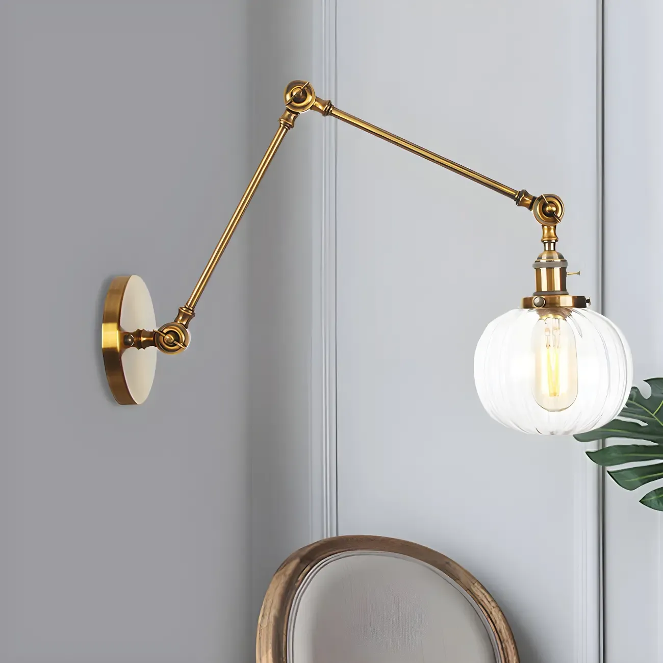 Minimalist Black Adjustable Wall Lamp with Glass Lampshade