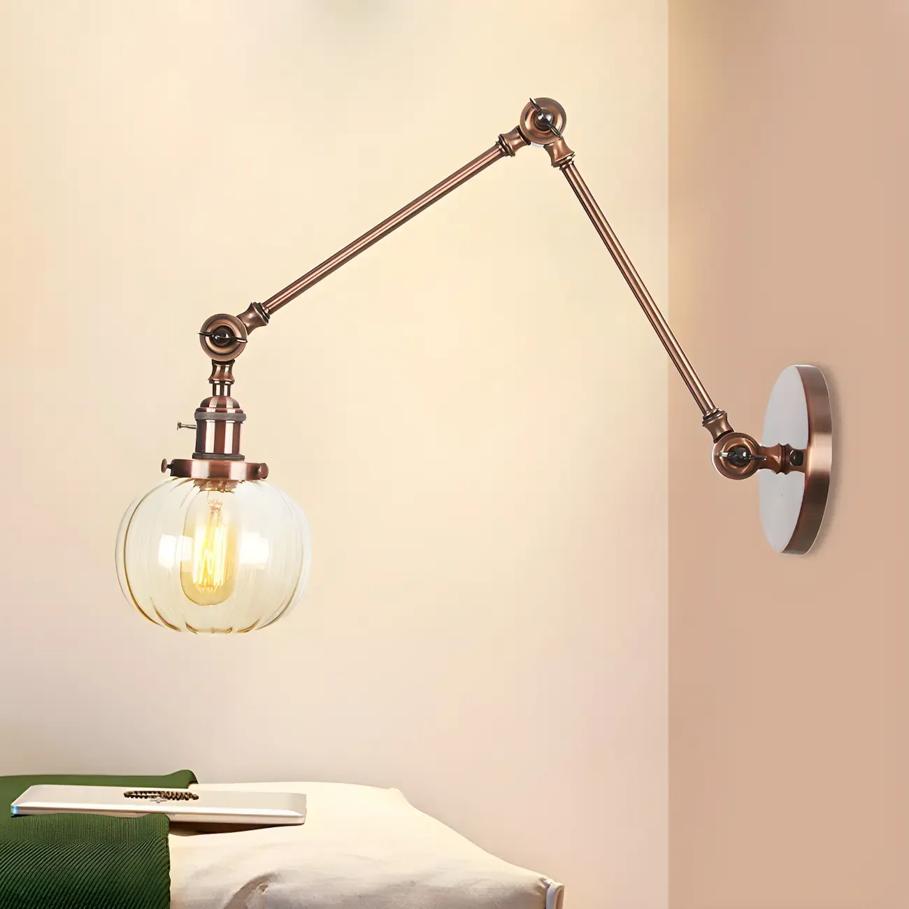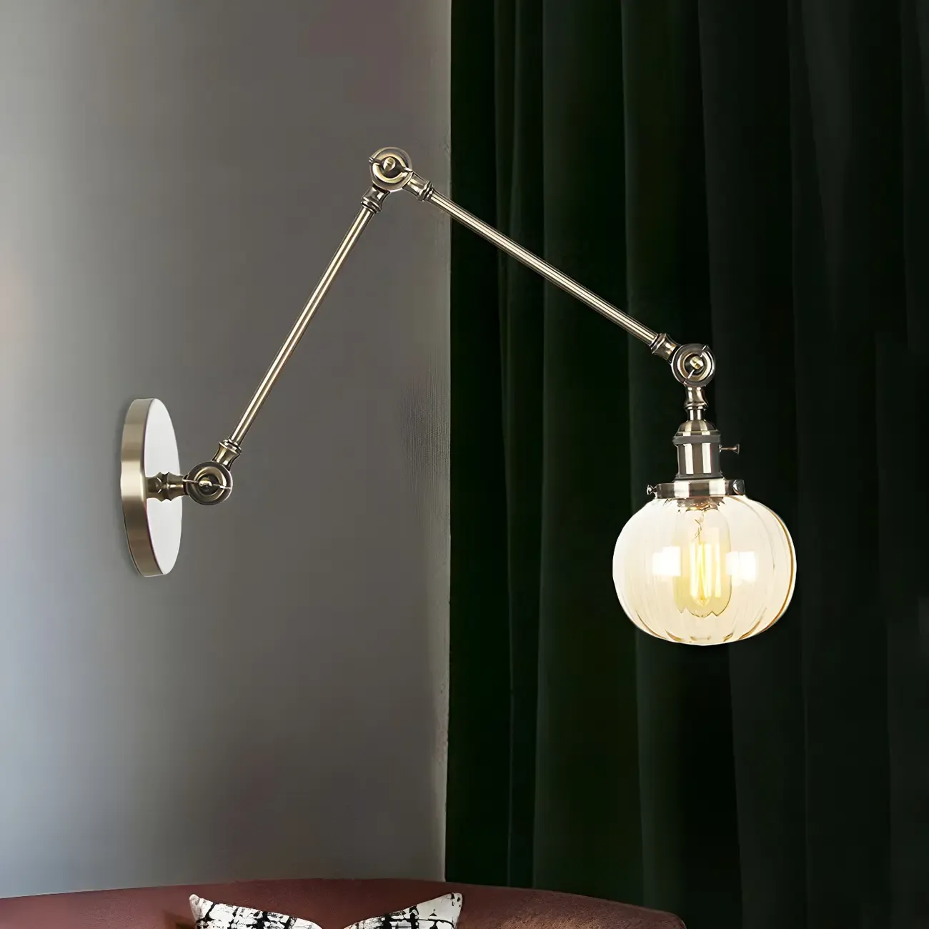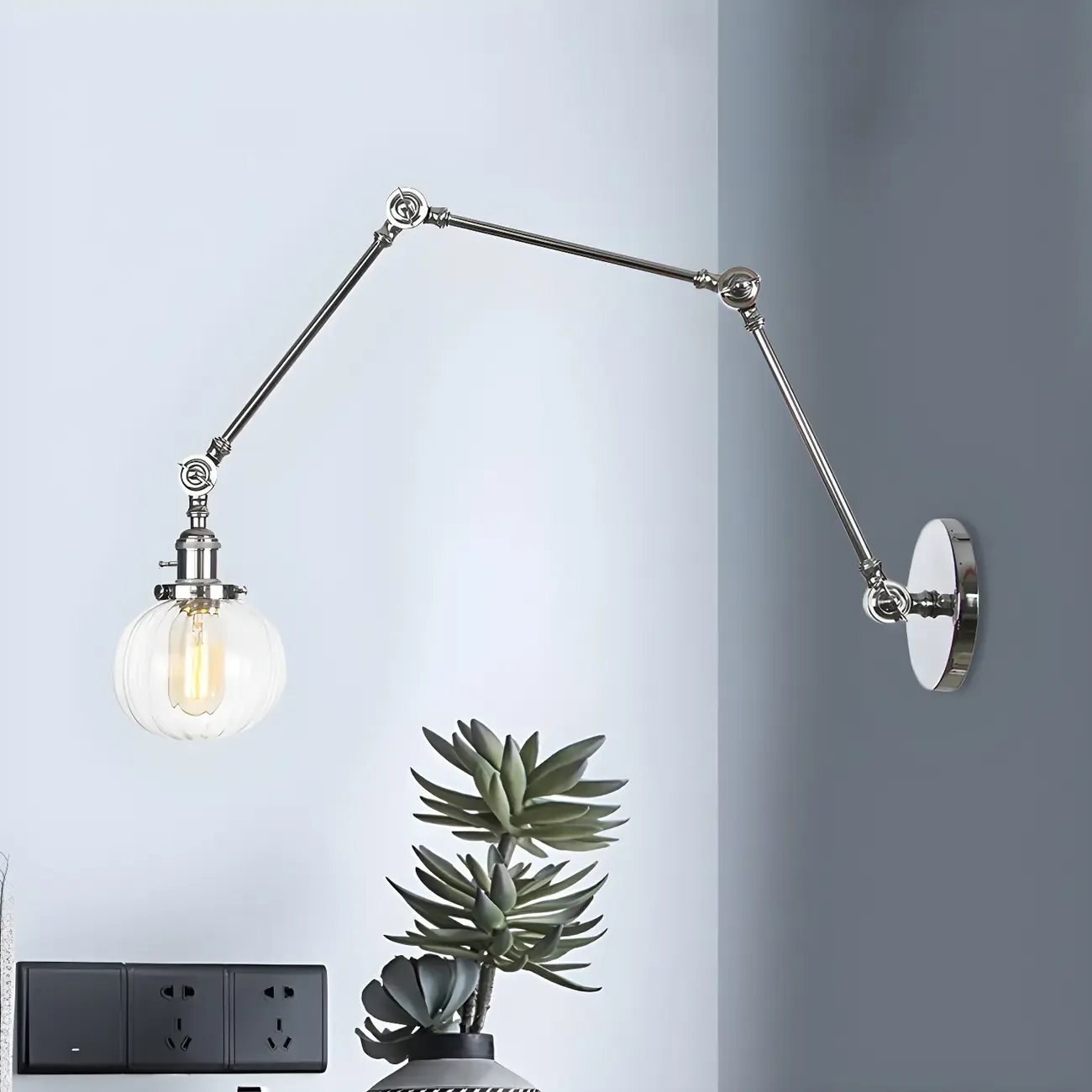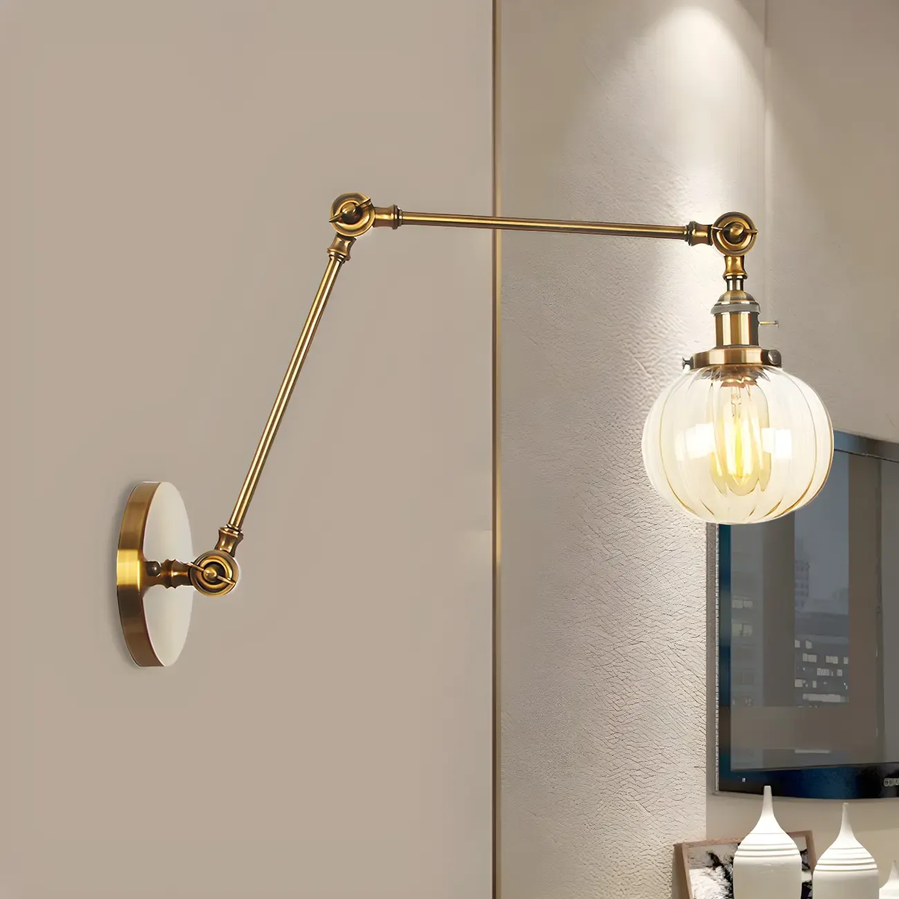 Minimalist Black Adjustable Wall Lamp with Glass Lampshade