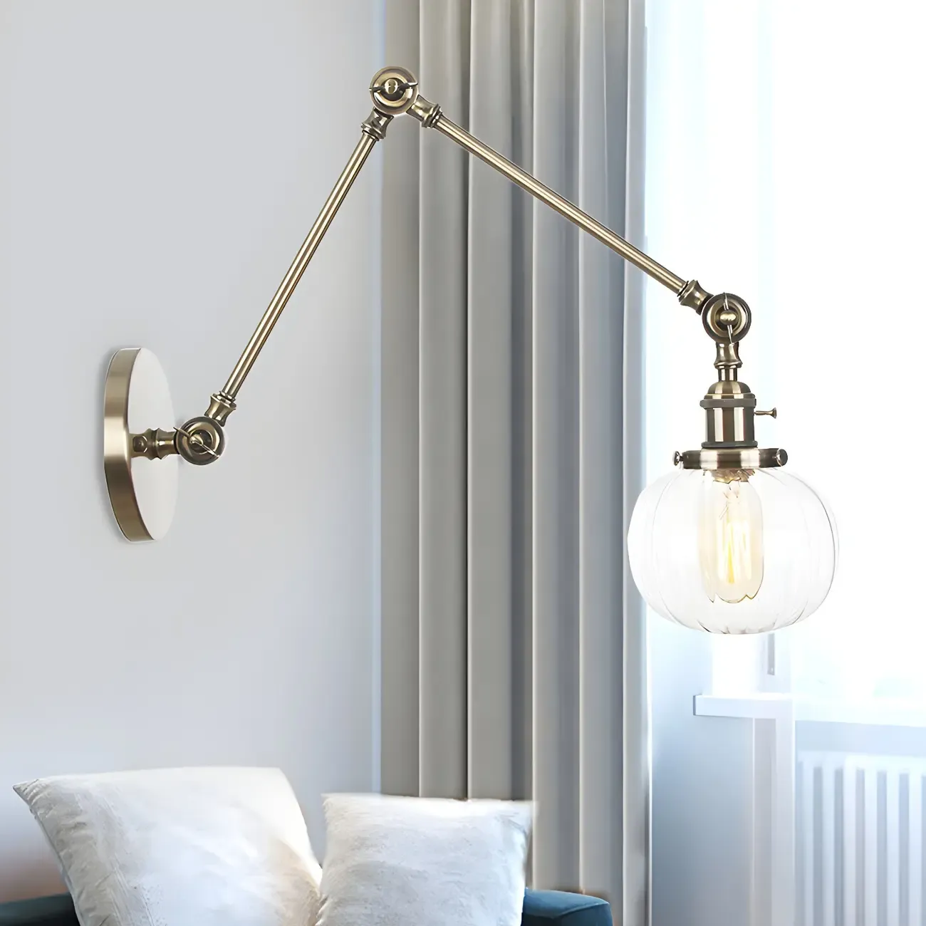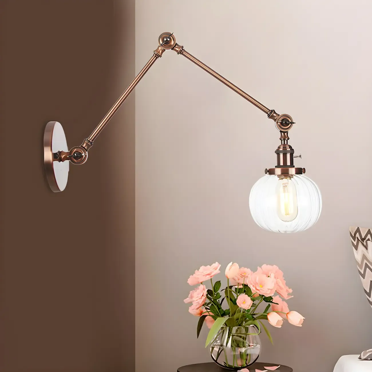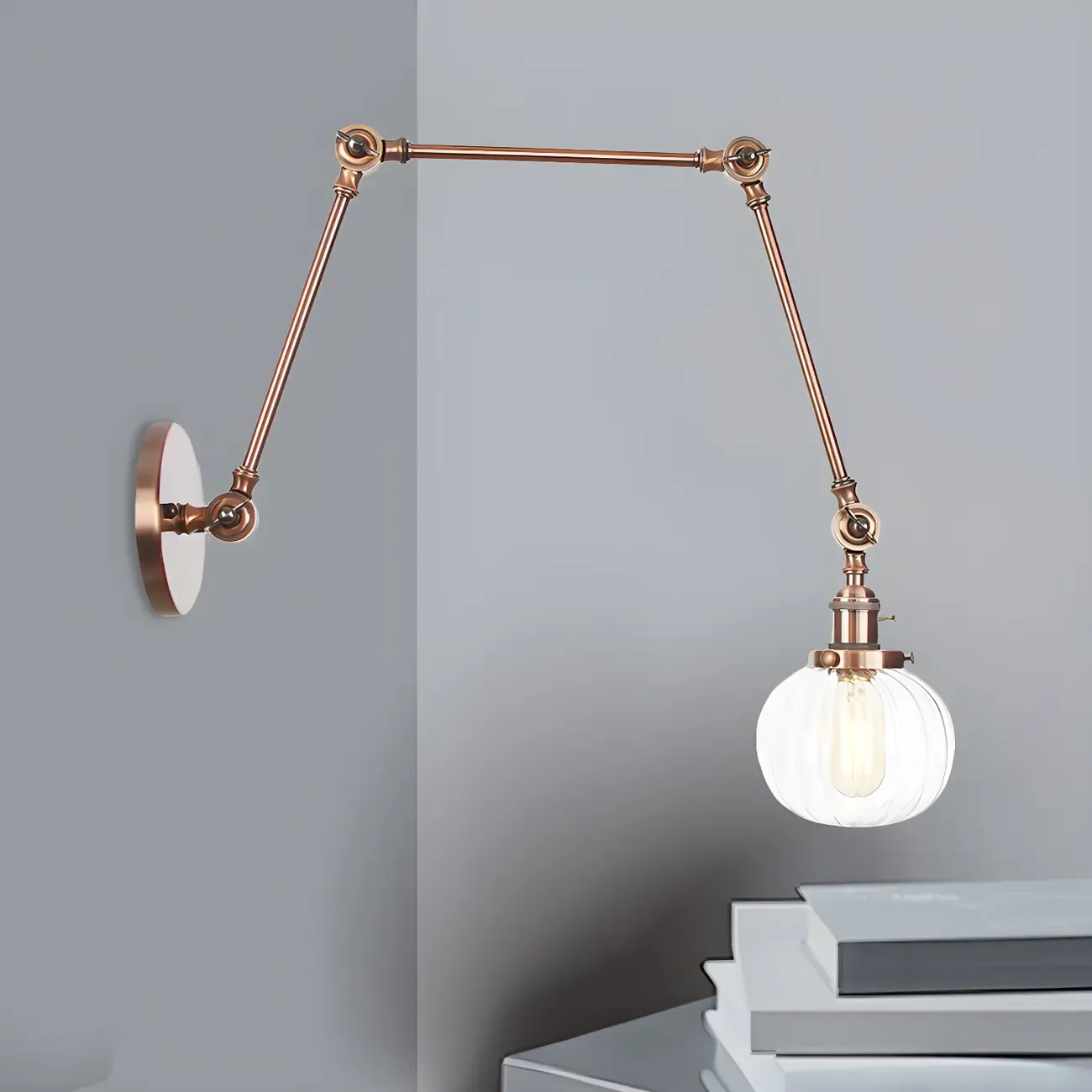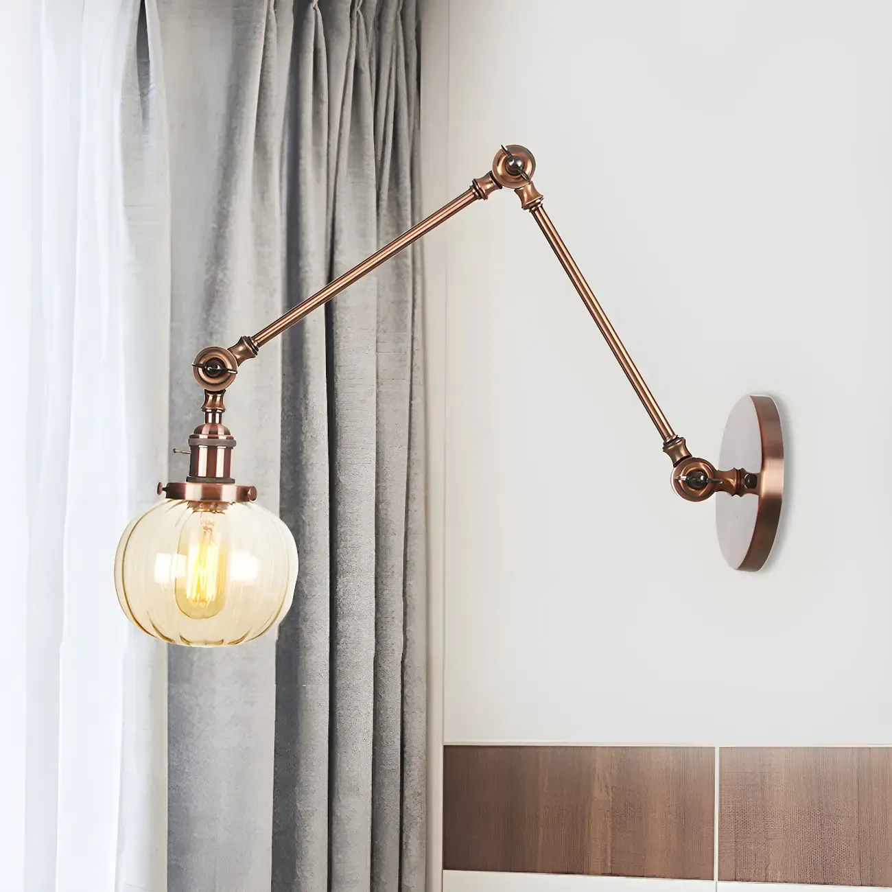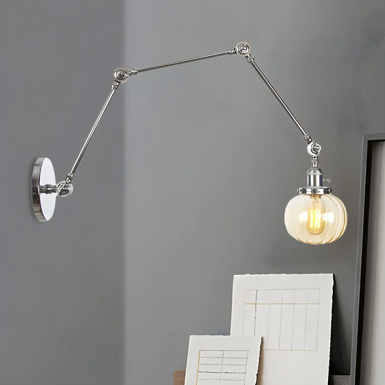Minimalist Black Adjustable Wall Lamp with Glass Lampshade