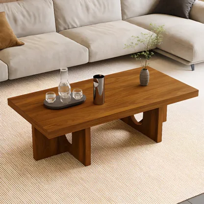 Minimalist Black Wood Rectangular Coffee Table for Living Room