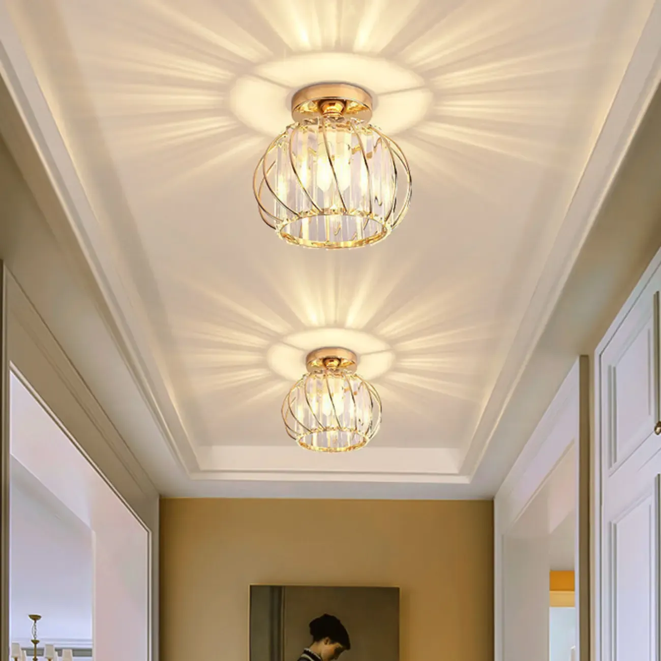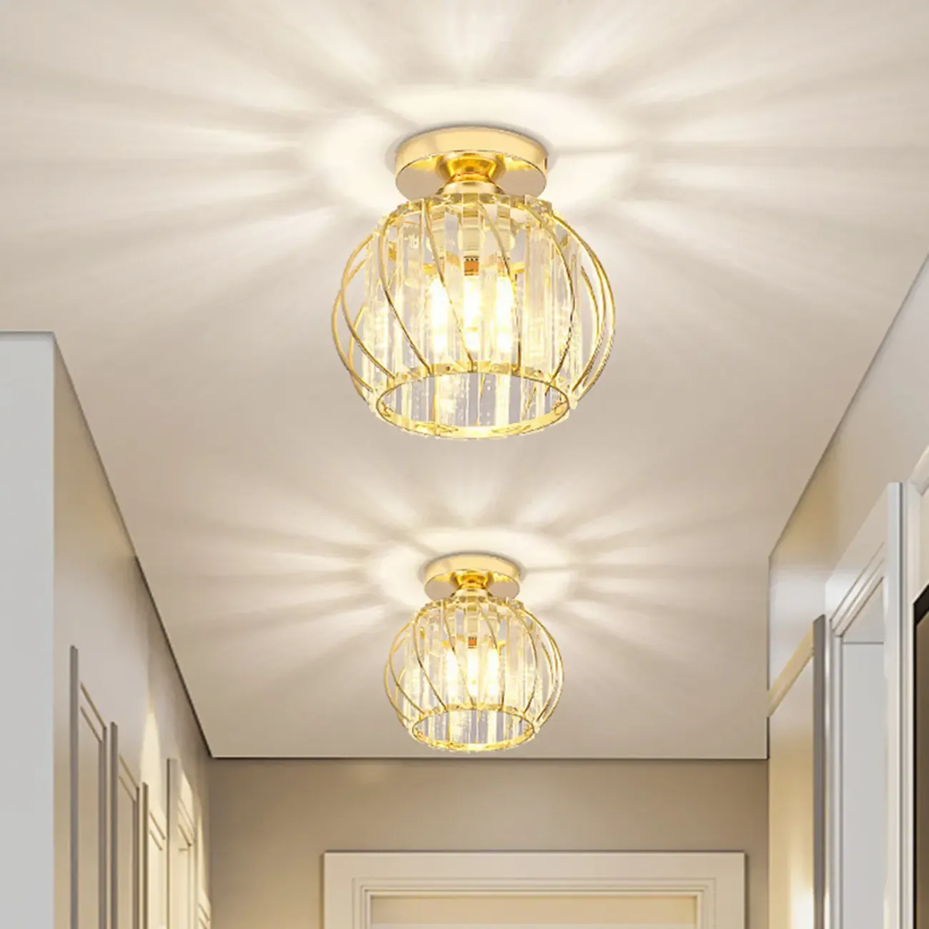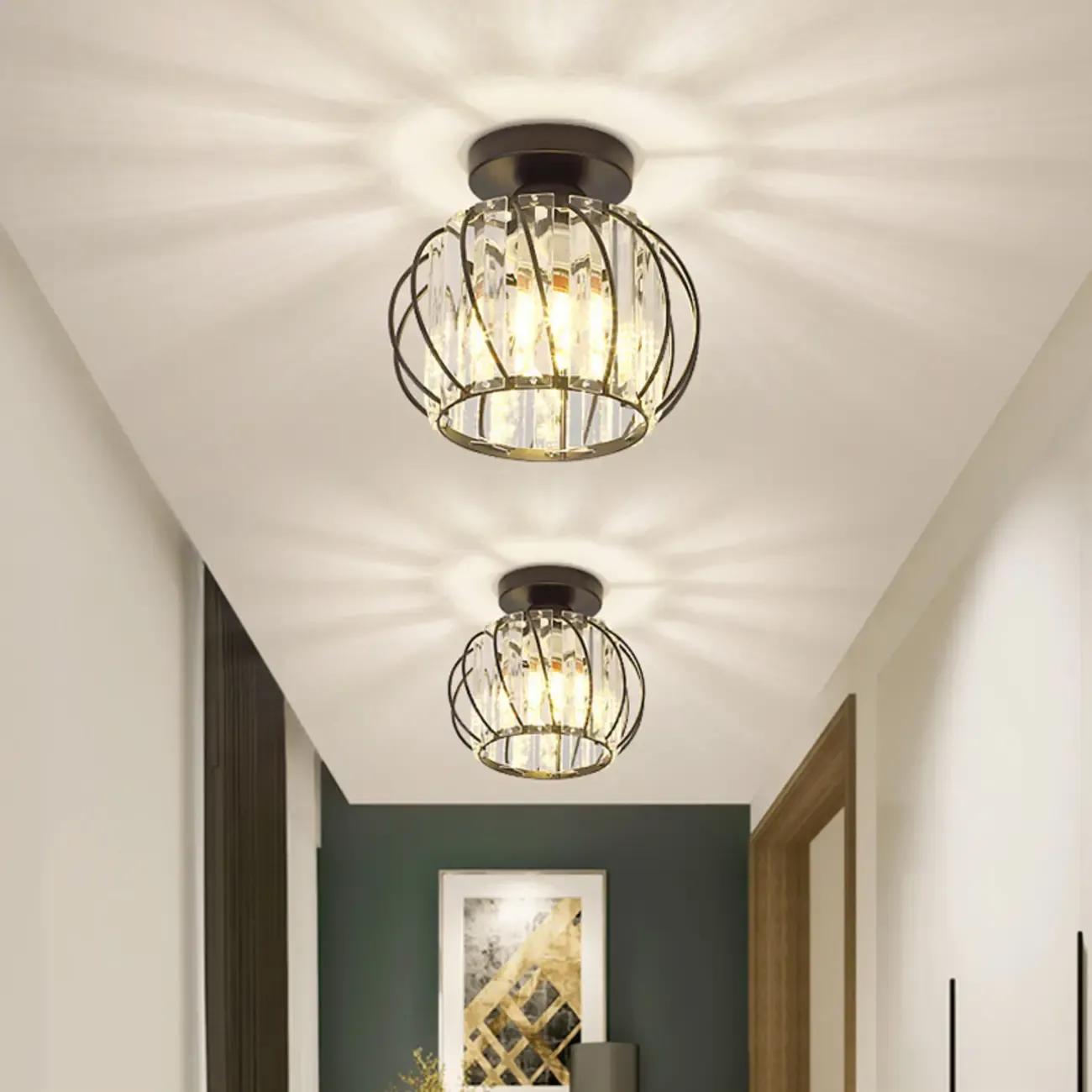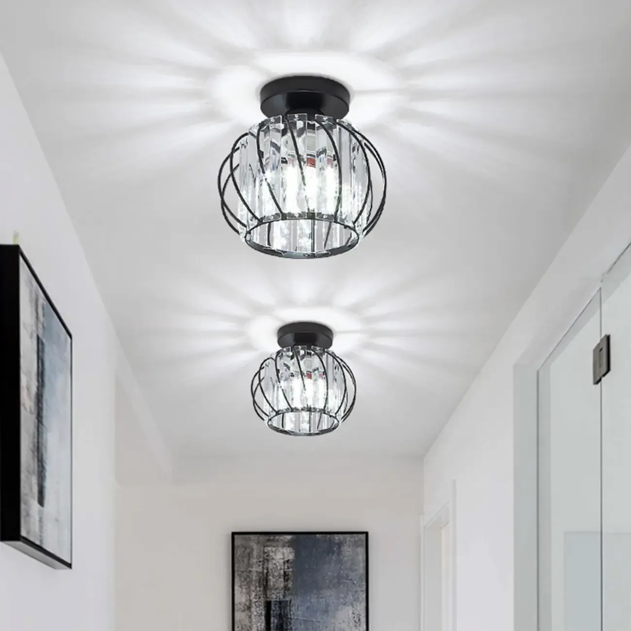 Minimalist Crystal Semi-Flush Mount Ceiling Light for Hallway