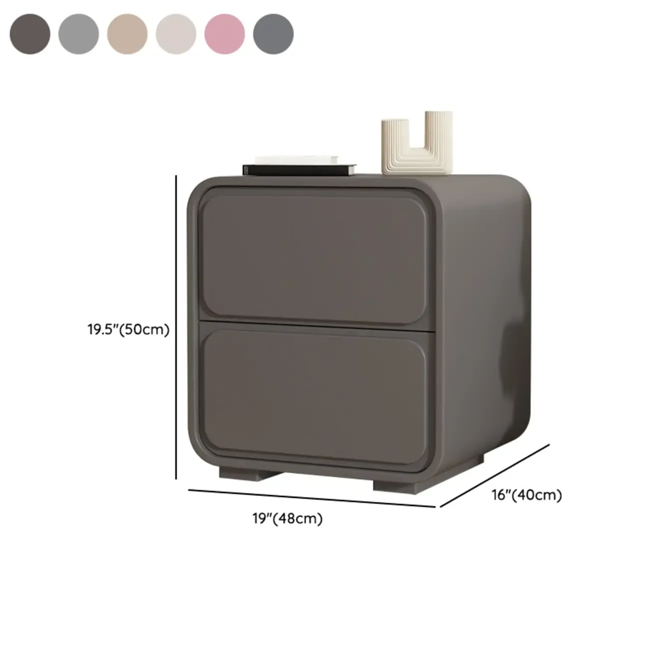 Modern Bedside Table with 2 Drawers - Beige Nightstand