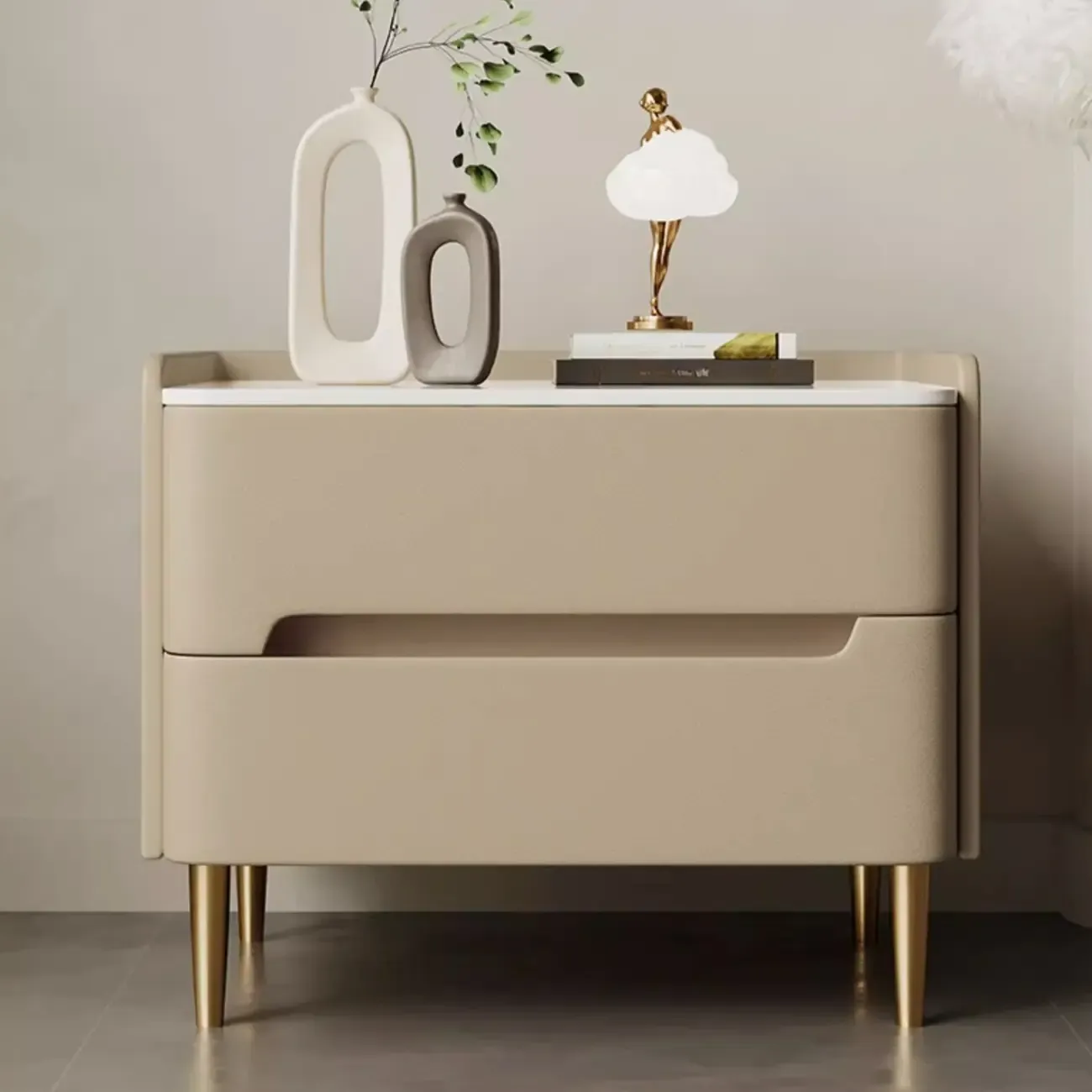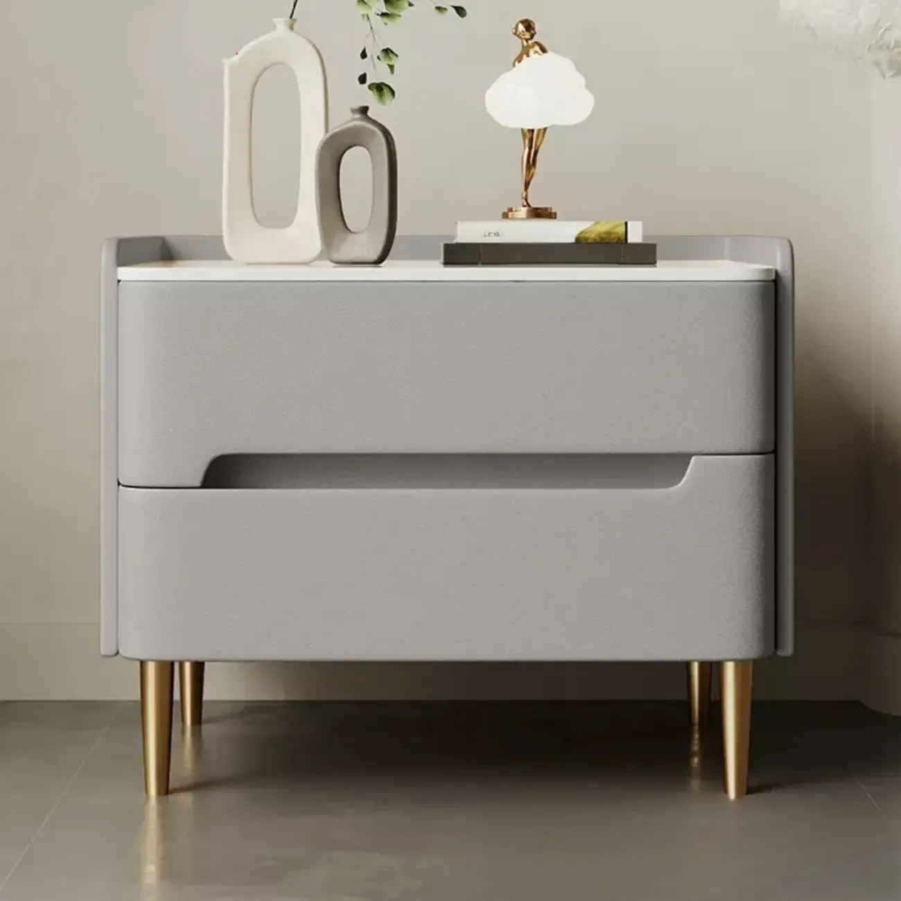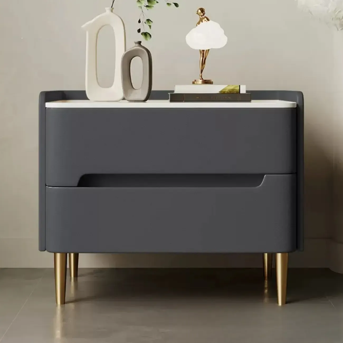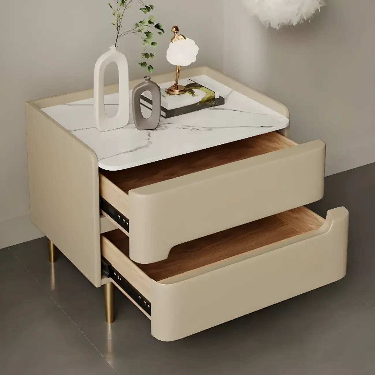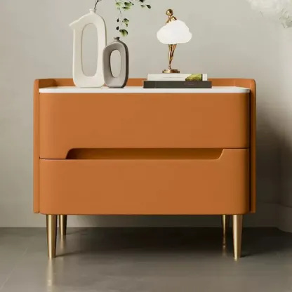 Modern Bedside Table with Marble Top & Storage Drawers