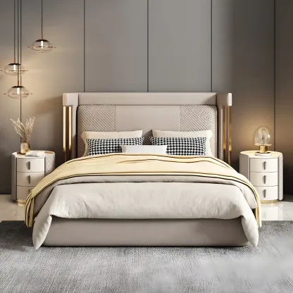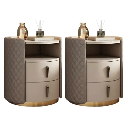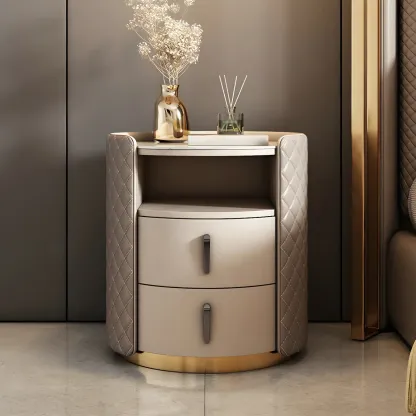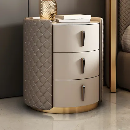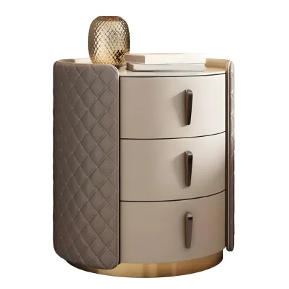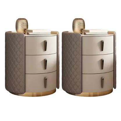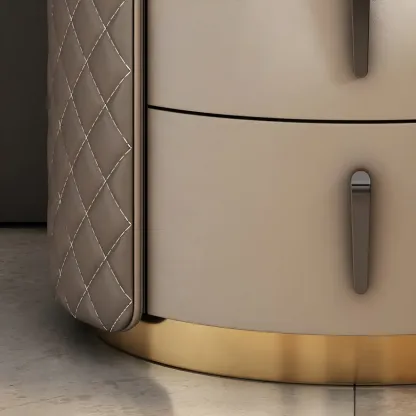 Modern Beige Faux Leather Nightstand with Drawers