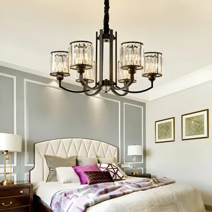 Modern Black Metal Wheel Cylinder Shape Crystal Chandelier for Living Room Hall