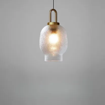 Gold Metal Ribbed Clear Glass Kitchen Pendant Light