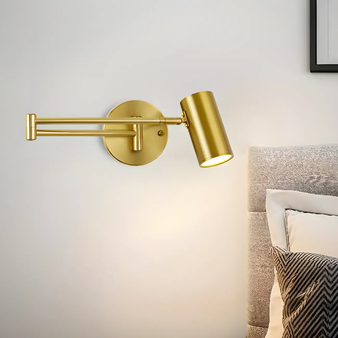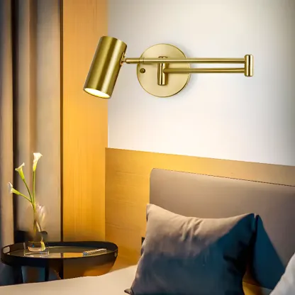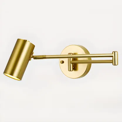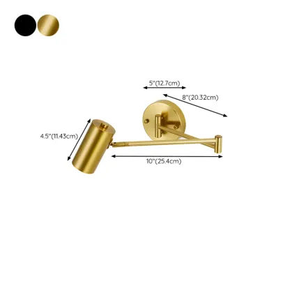 Modern Cylindrical Gold Swing Arm Wall Light for Indoor Use