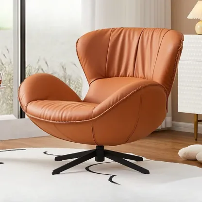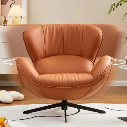 Modern Faux Leather Orange Swivel Armchair