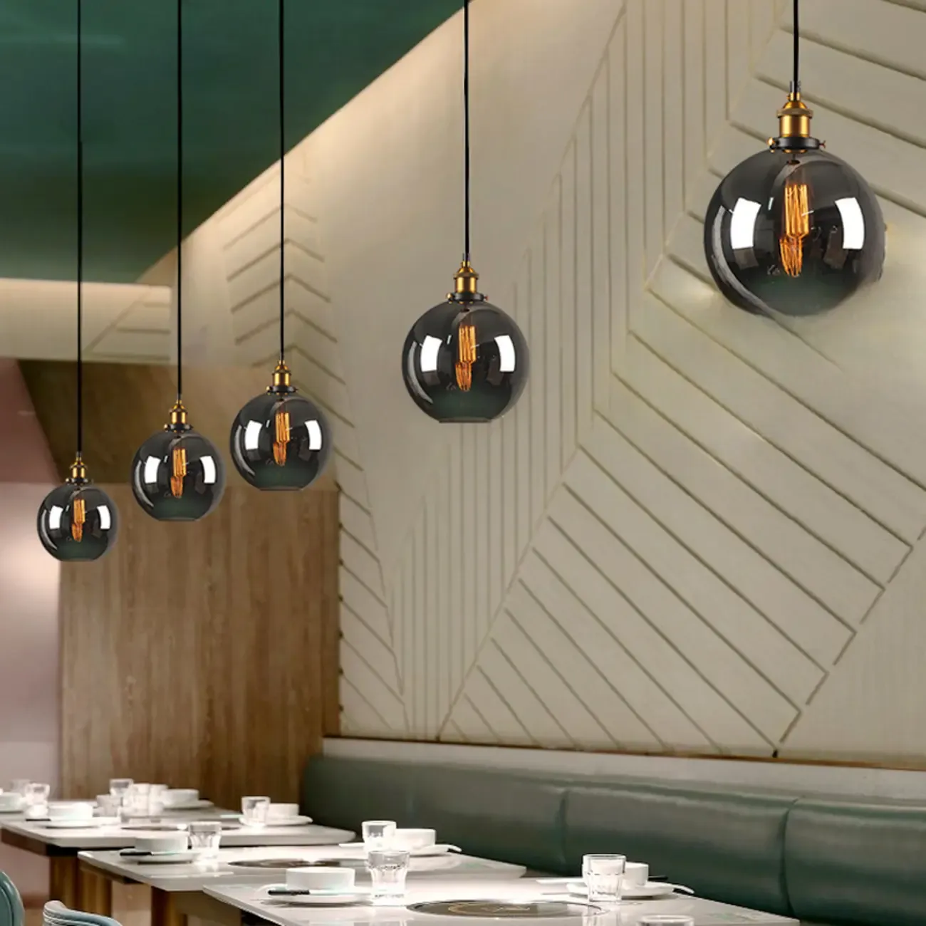 Modern Geometric Glass Gold Pendant Light Fixture for Bedroom