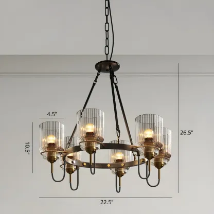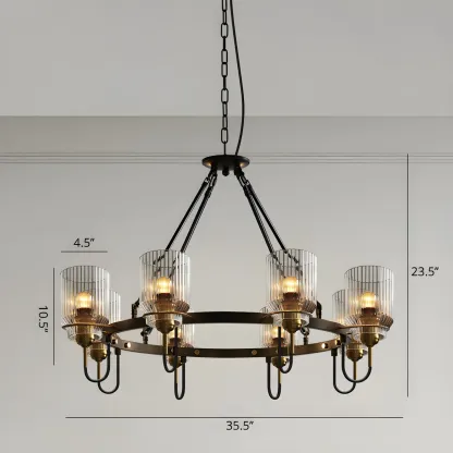 Modern Industrial Black Cylinder Glass Hoop Chandelier
